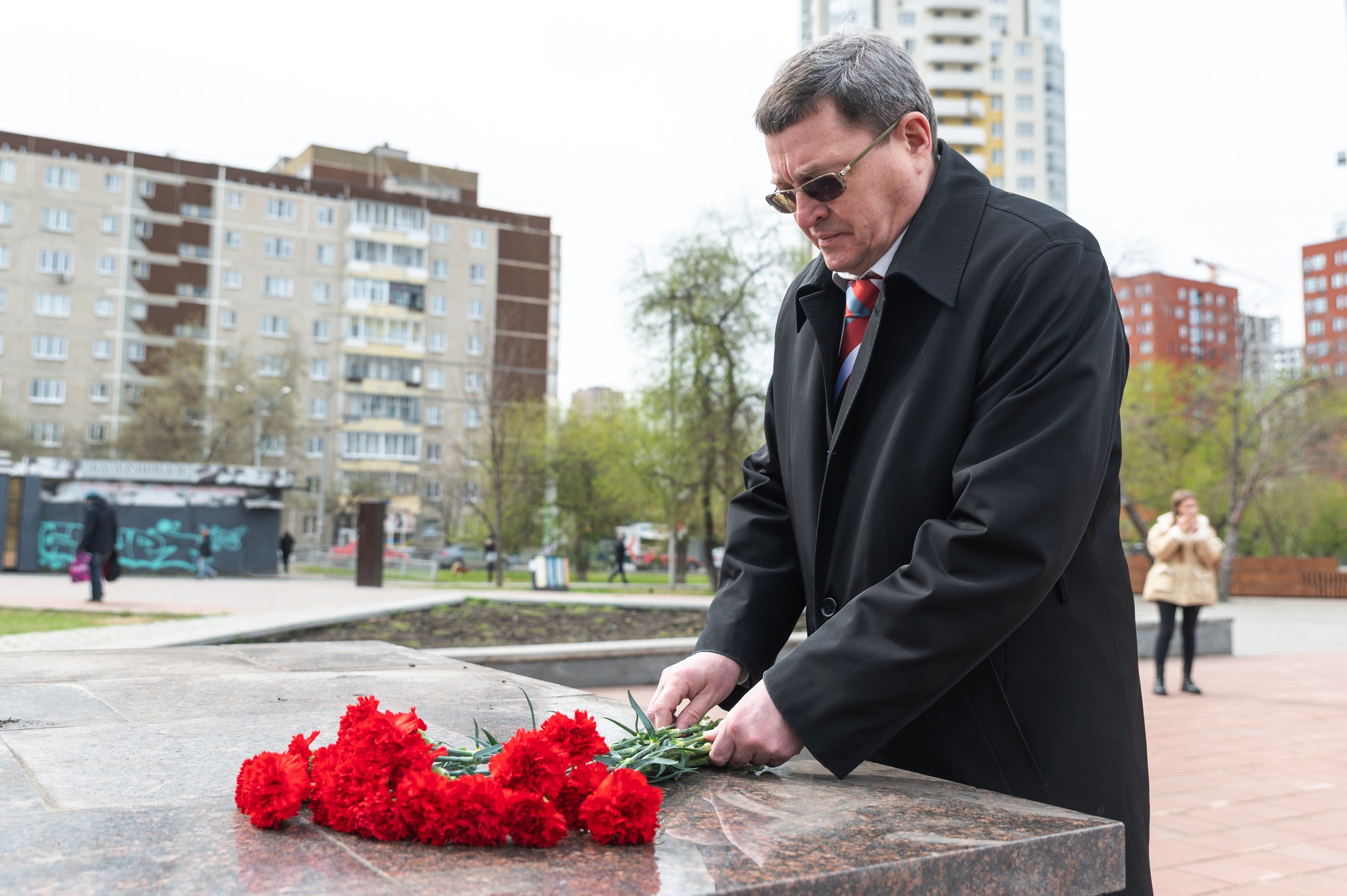 Аркадий Викторович Брызгалин принял участие в торжественной церемонии возложения цветов к мемориалу «Уральцам-защитникам Родины» на площади Обороны