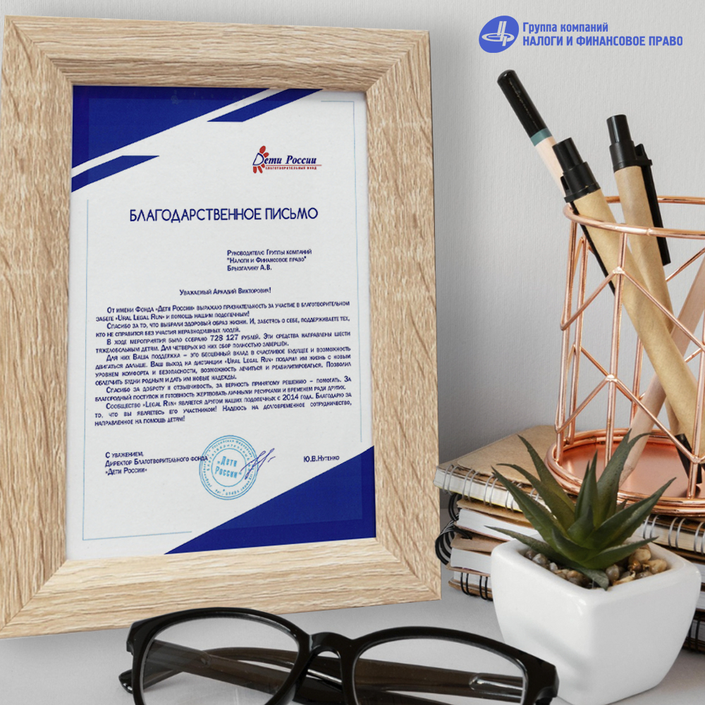 Это письмо очень дорого для нас: в череде повседневных дел и ответственной работы сотрудники ГК «Налоги и финансовое право» принимают участие и в благотворительных мероприятиях.