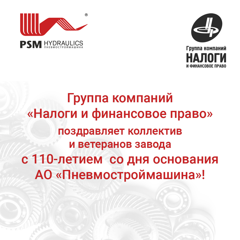 Группа компаний «Налоги и финансовое право» поздравляет коллектив и ветеранов завода с 110-летием со дня основания АО «Пневмостроймашина»!
