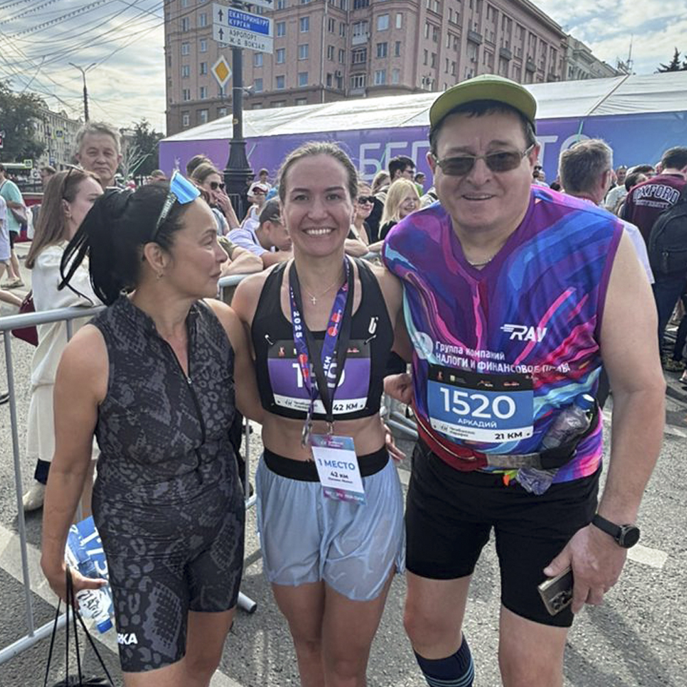 В этот день самые активные участники нашей бегательной команды, руководитель ГК «Налоги и финансовое право» Аркадий Брызгалин и Лилия Костенко пробежали по центру города полумарафон и стали свидетелями исторического момента — обновления многолетних рекордов!