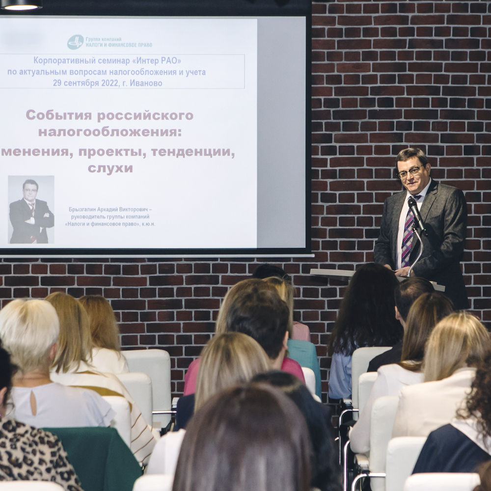 1 октября руководитель ГК «Налоги и финансовое право» Аркадий Викторович Брызгалин выступил для специалистов наших давних партнеров – ПАО «Интер РАО». Этой доброй традиции уже много лет.