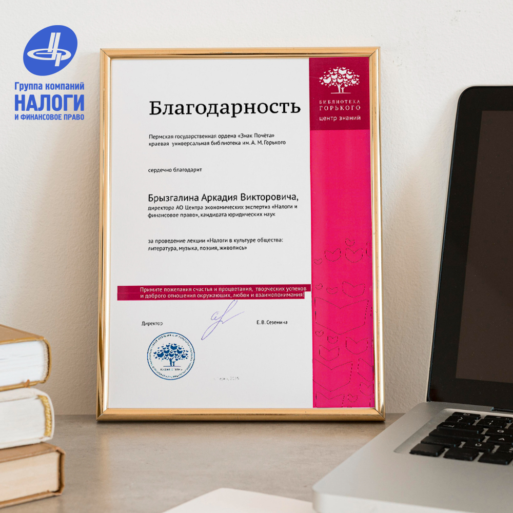 Вот лишь пара писем, пришедших в наш адрес в последнее время: благодарственное письмо за лекцию А.В. Брызгалина, прочитанную в Пермской краевой универсальной библиотеке им А.М. Горького и благодарственное письмо от молодой и очень энергичной Федеральной ассоциации бухгалтеров-аутсорсеров ФАБА-Платинум. С ФАБА у нас сложились очень теплое партнёрство, которое, надеемся, будет только крепнуть.