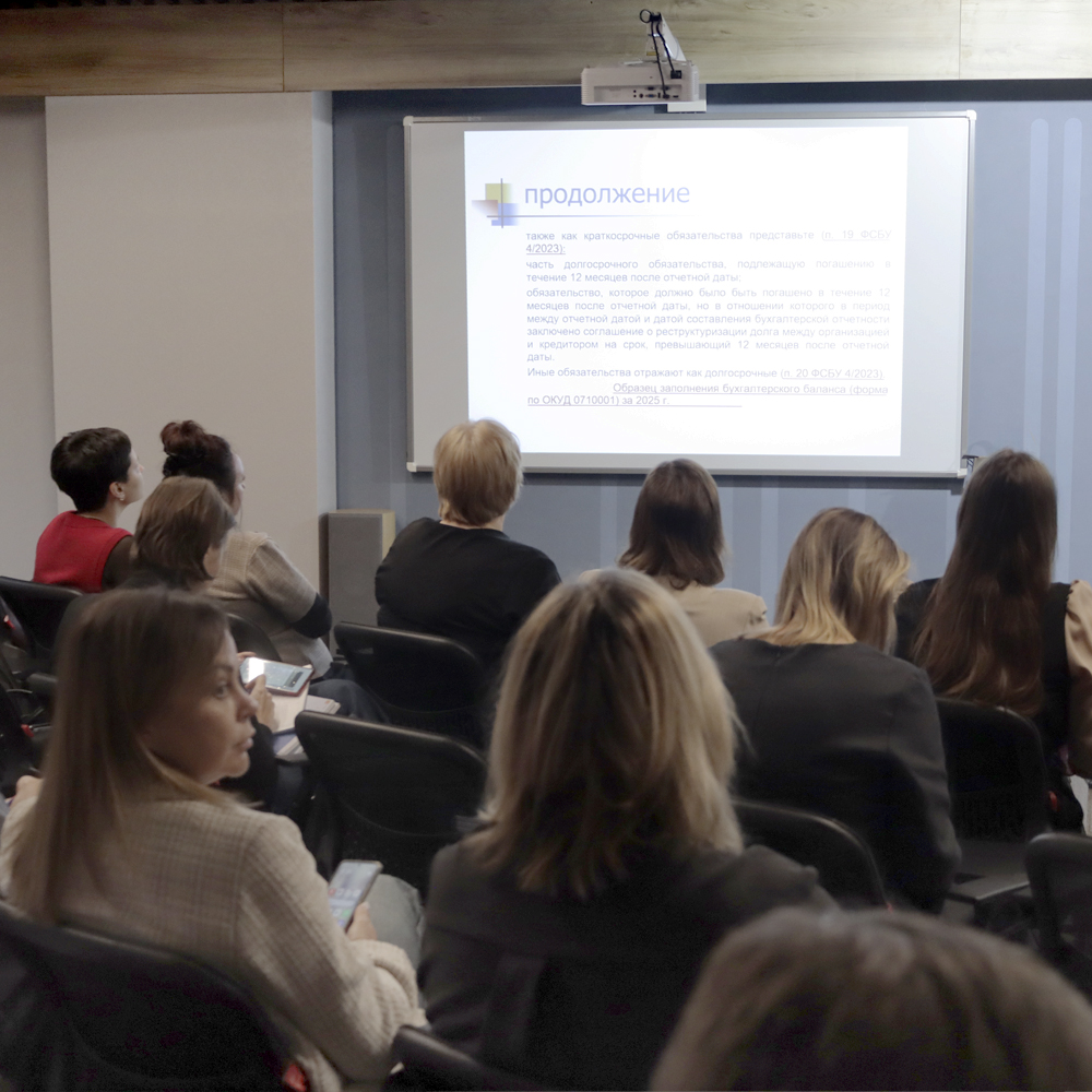 Основная тема доклада Вершининой Татьяны Александровны касалась нового в налоговом и бухгалтерском законодательстве в 2025г., на что необходимо обратить внимание, а также вопросам подготовки к годовому отчёту.