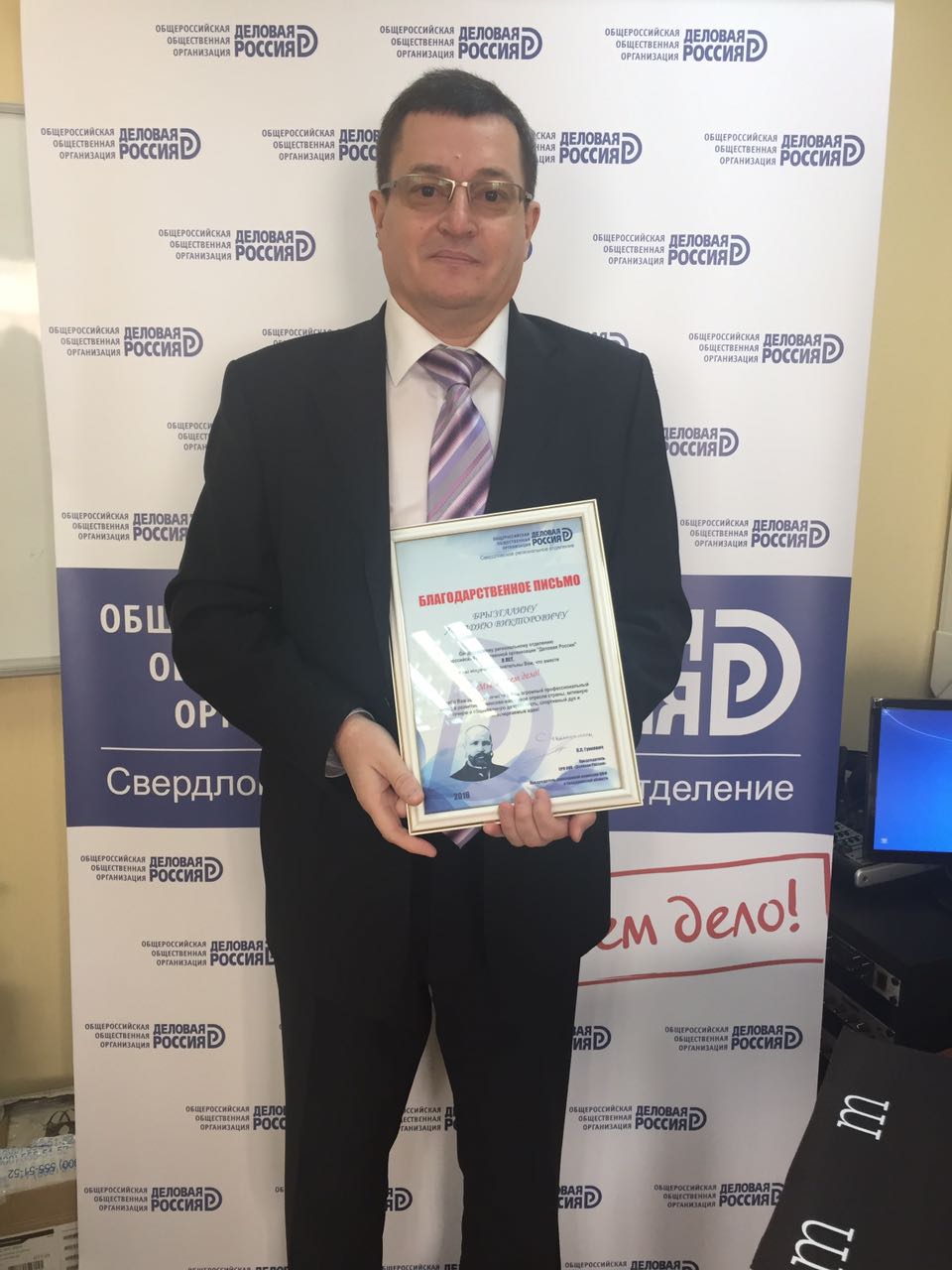 Аркадию Викторовичу Брызгалину, генеральному директору Группы компаний "Налоги и финансовое право" 14 октября 2016 года вручили Благодарственное письмо от Свердловского регионального отделения "Деловая Россия".