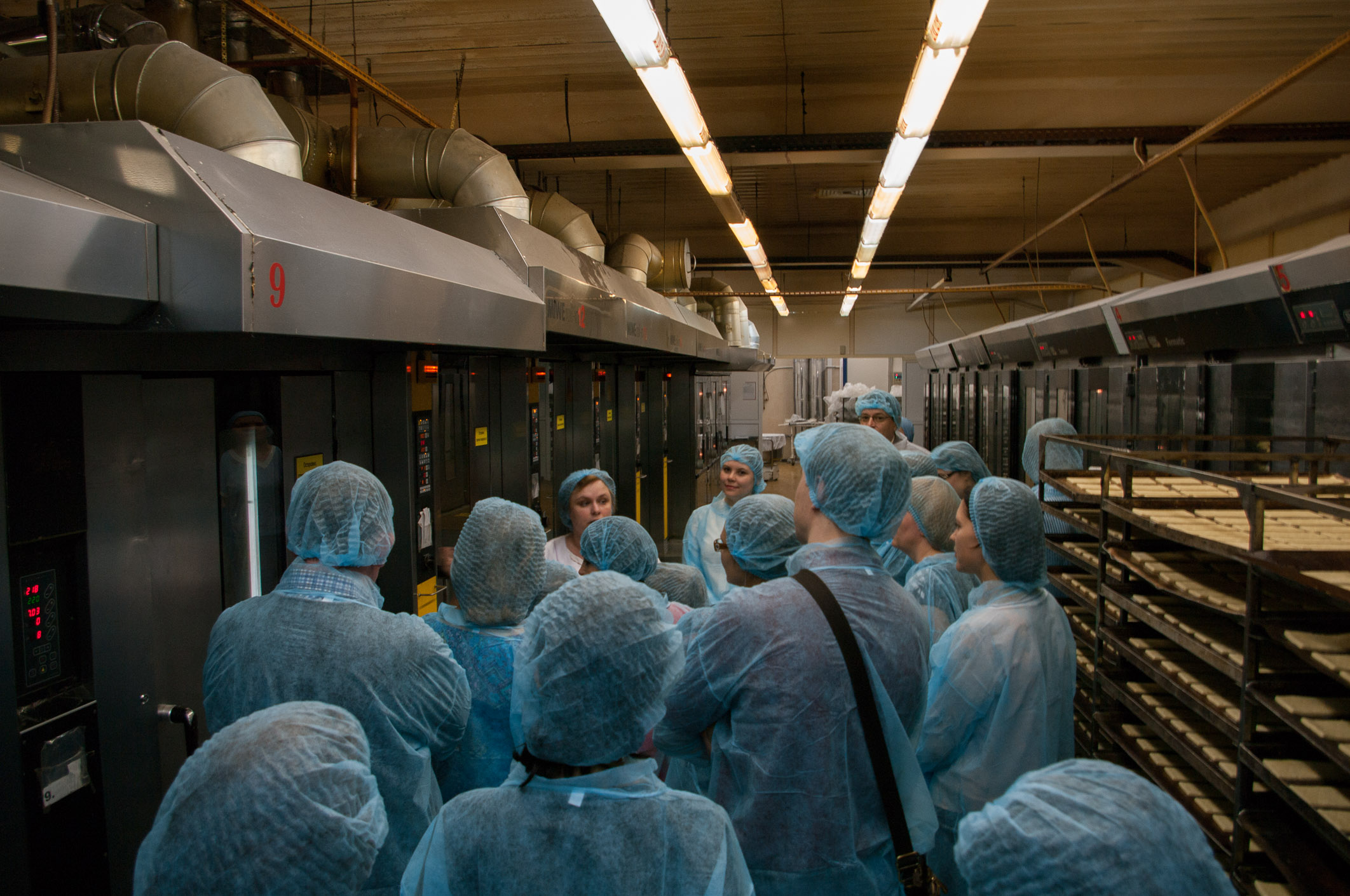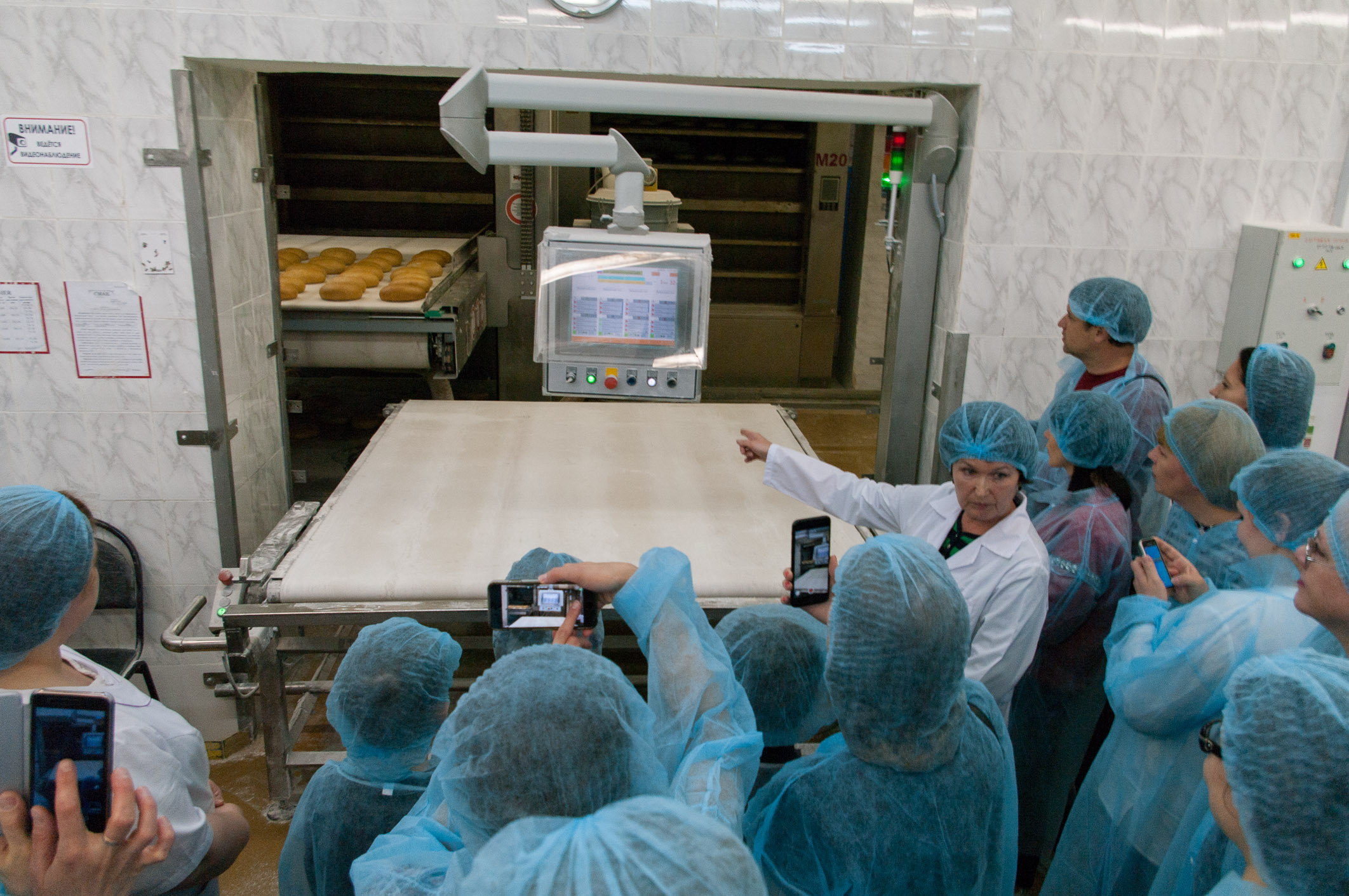 Оказывается, подовый хлеб выпекается в печах на каменном поду, как в настоящей русской печи. Также нам показали цех с высокотехнологичной полностью автоматизированной поточной линией.