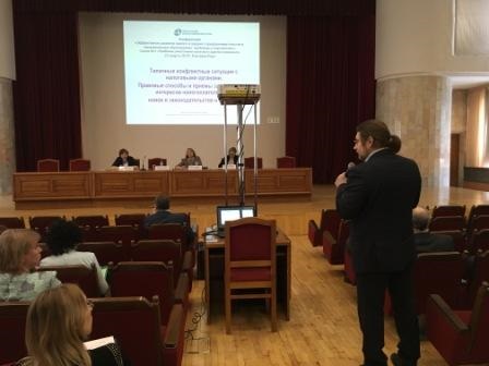 Он выступил в секции "Проблемы ужесточения налогового администрирования во взаимоотношениях между предпринимателями и налоговыми органам" с темой: "Типичные конфликтные ситуации с налоговыми органами. Правовые способы и приемы защиты прав и интересов налогоплательщика: новое в законодательстве и практике".