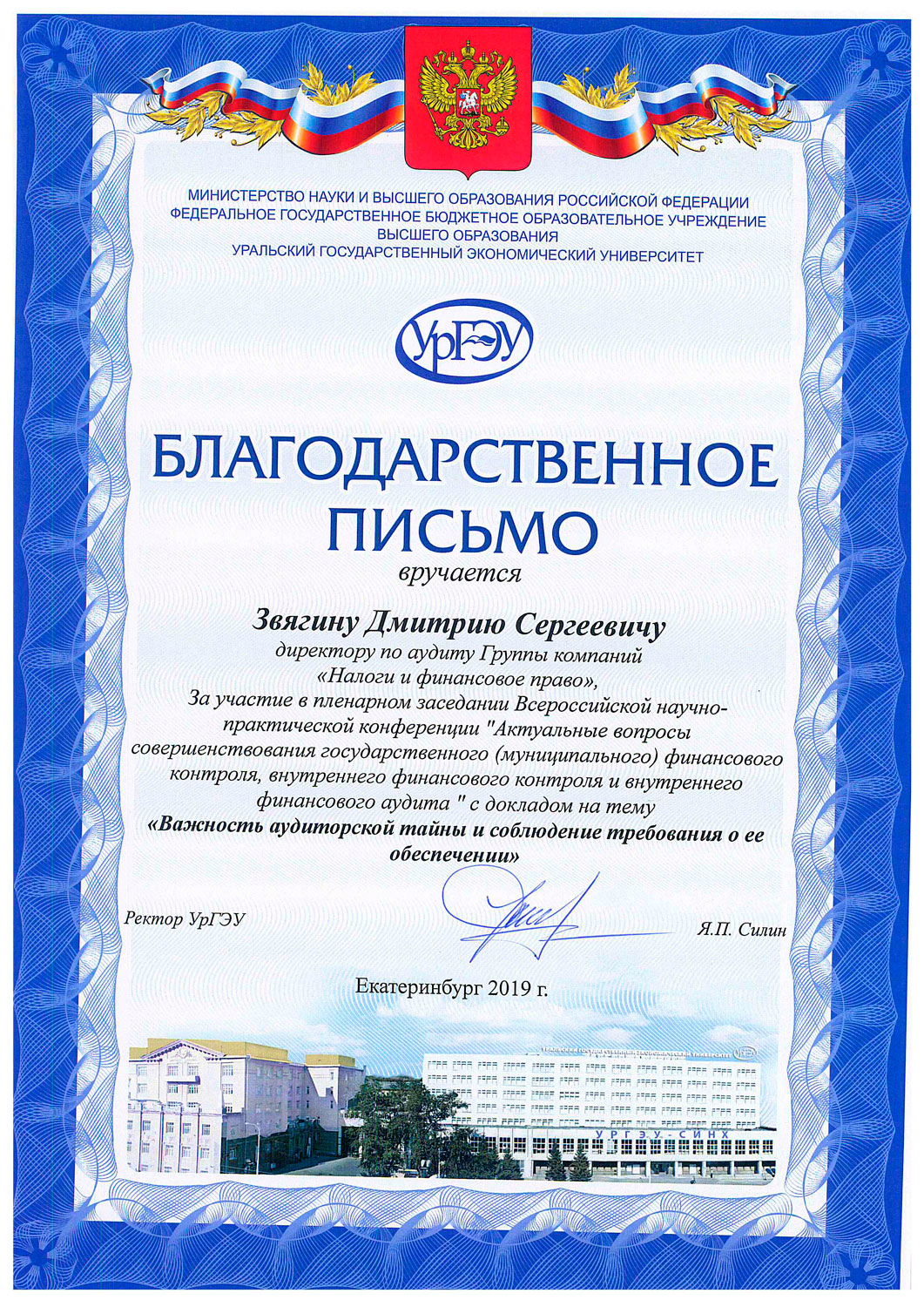 Директор по аудиту ГК «Налоги и финансовое право» Дмитрий Звягин принял участие во Всероссийской научно-практической конференции в УрГЭУ