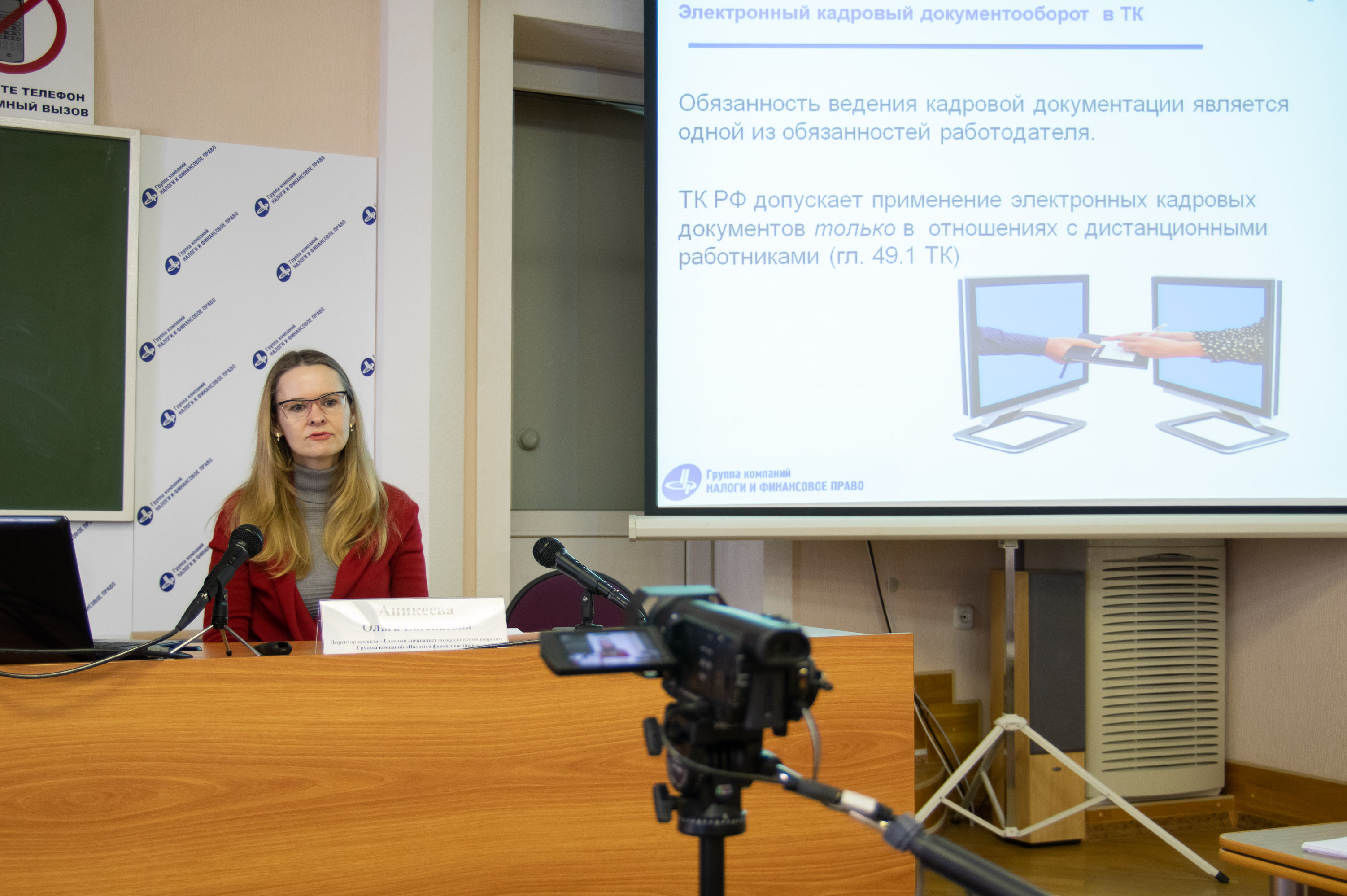 Главный специалист ГК «Налоги и финансовое право» Ольга Аникеева подробно посвятила слушателей в подробности электронного документооборота в организации - в том числе о рисках работодателя при переводе кадровых документов в электронный формат; о переходе на электронные трудовые книжки; порядоке применения электронных листов нетрудоспособности.