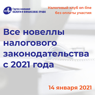 Традиционное ежегодное заседание Налогового клуба on-line в открытом доступе "Все новеллы налогового законодательства с 2021 года" состоится 14 января 2021. Успевайте зарегистрироваться!