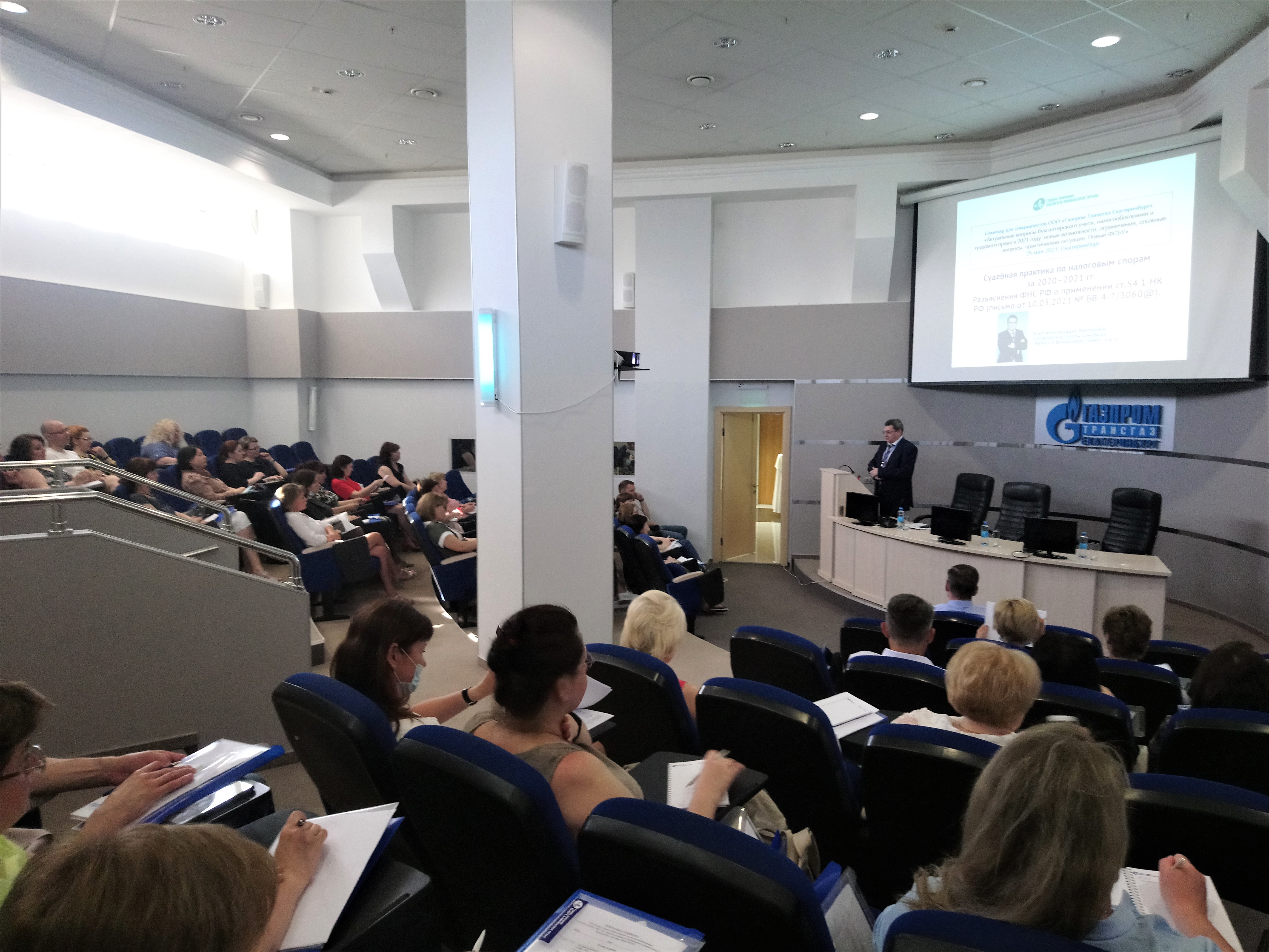 В конце мая на площадке ООО «Газпром трансгаз Екатеринбург» эксперты ГК «Налоги и финансовое право» провели семинар на тему: «Актуальные вопросы бухгалтерского учета, налогообложения и трудового права в 2021 году: новые возможности, ограничения, сложные вопросы, практические ситуации. Новые ФСБУ». Мероприятие было посвящено изучению самых свежих тем налогового и бухгалтерского учета, кадрового делопроизводства, а также электронного документооборота.