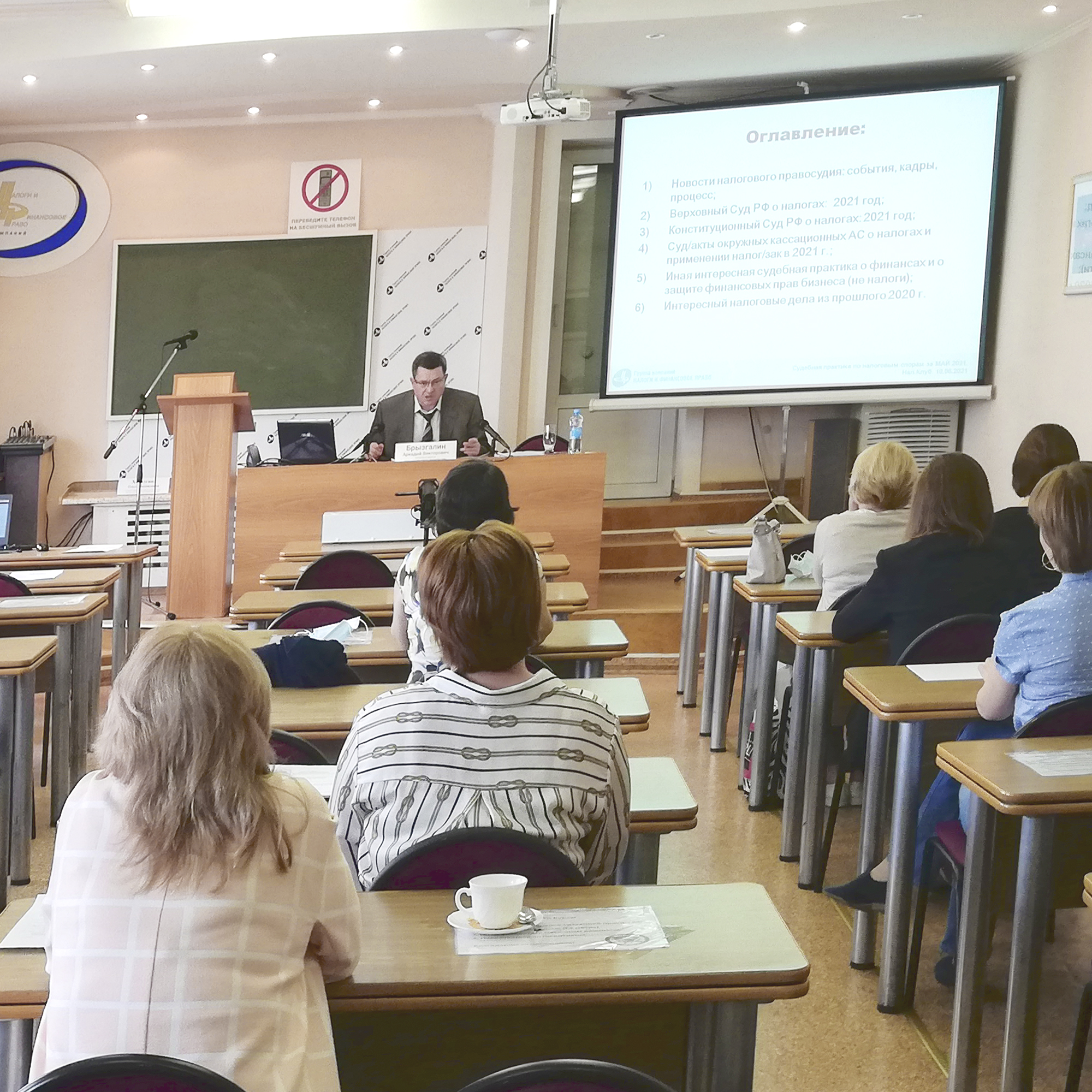 Заседание клуба началось с информационного сообщения о событиях российского налогообложения и обзора судебной практики по налоговым спорам за май 2021 года от генерального директора Центра «Налоги и финансовое право» Аркадия Брызгалина.