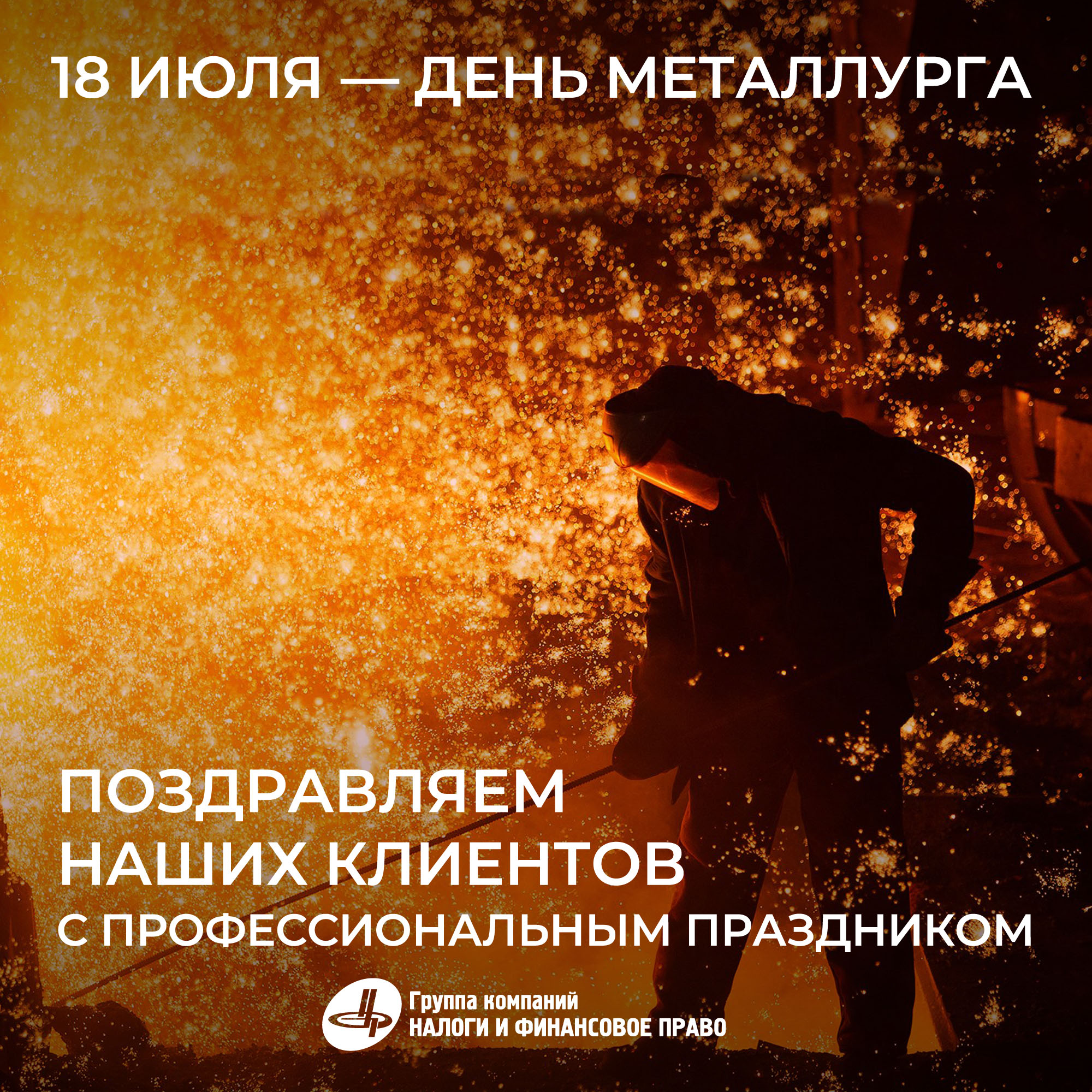 От лица всех работников Группы Компаний «Налоги и финансовое право» хотим пожелать всем металлургам крепкого здоровья, горячего сердца, в котором горит любовь к жизни, семье, работе, успехов в любых начинаниях.