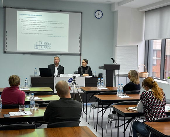 В следующем большом блоке сразу два эксперта рассказали о современных подходах к определению недвижимости как объекта налогообложения. Первый заместитель генерального директора Евгений Гринемаер и главный специалист по экономическим вопросам Татьяны Катанаева, обобщив все имеющиеся материалы из практики и официальных разъяснений, составили полную картину имеющихся налоговых рисков и путей защиты на случай налогового спора по сложным производственным объектам, сооружениям и технологическим цепочкам.Завершилось заседание индивидуальными консультациями и ответами на вопросы.