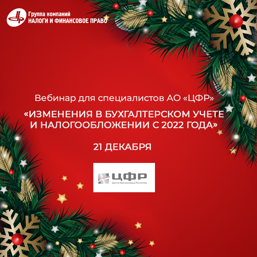 Знаете, чем хорош день – 21 декабря 2021? Кроме того, что это самый короткий день в году, нереальное сочетание цифр 21.12.2021 и 10 дней до Нового года?В этот день мы организовали и провели вебинар «Изменения в бухгалтерском учете и налогообложении с 2022 года» для специалистов АО «ЦФР», своих давних партнеров.