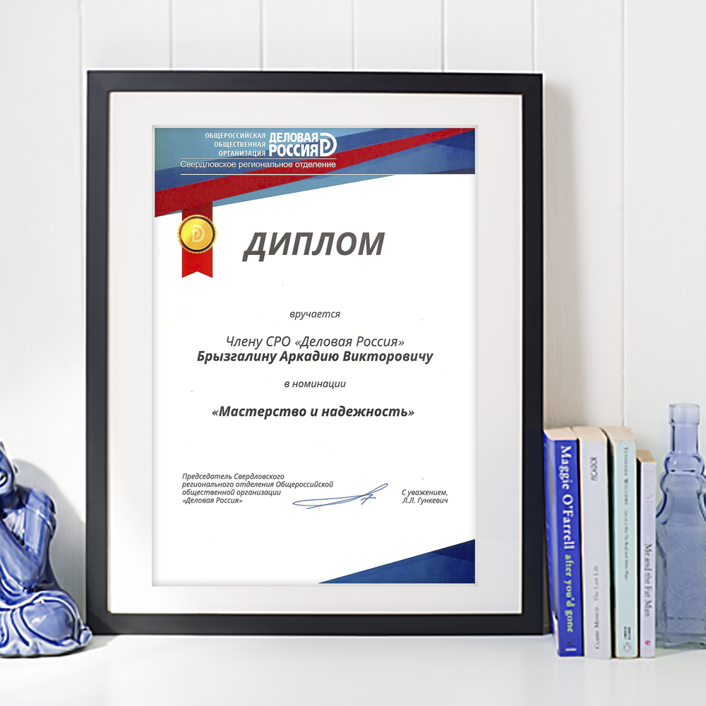 Мастерство и надежность Аркадия Викторовича Брызгалина были отмечены в Общероссийской общественной организации «Деловая Россия»