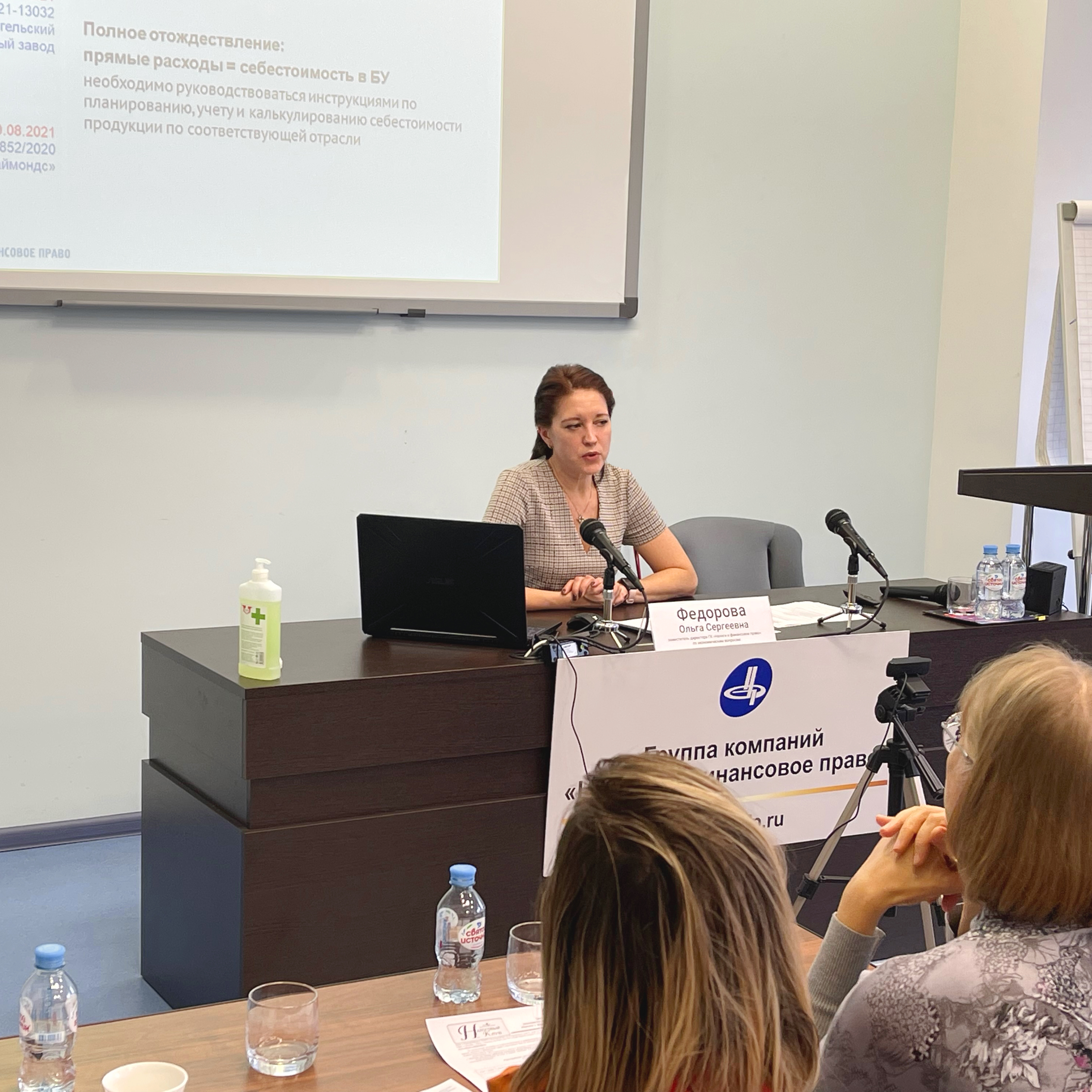 Затем слово взяла Ольга Сергеевна Федорова, заместитель генерального директора по экономическим проектам. Ольга Сергеевна подробно рассказала о новых правилах, изменения в отчетности в 2022 году в части НДС, налога на прибыль и имущество, а также коснулась нововведений в бухгалтерском учете.