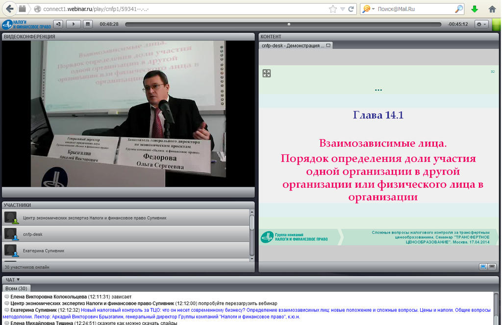 Приятной неожиданностью стало появление на семинаре начальника управления трансфертного ценообразования и международного сотрудничества ФНС России, государственного советника РФ 1 класса, Вольвача Дмитрия Валерьевича, который изложил позицию ФНС России по некоторым вопросам трансфертного ценообразования и дал ответы на вопросы участников семинара.