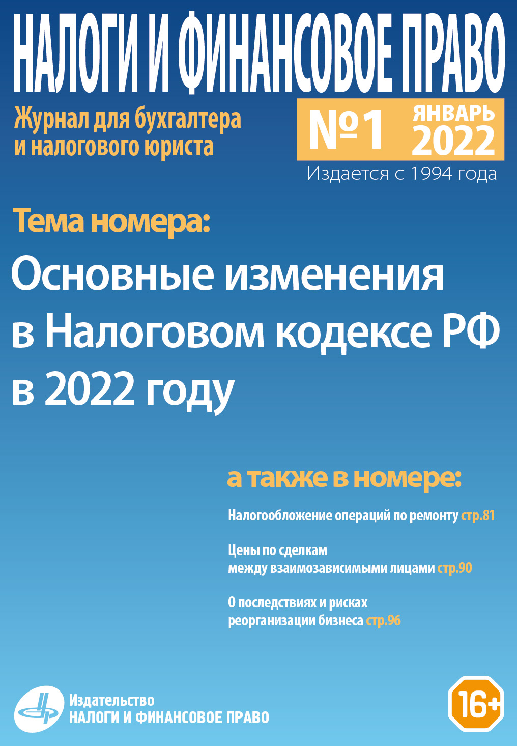 Новый номер журнала №01/2022. «Основные изменения в Налоговом кодексе РФ в 2022 году»