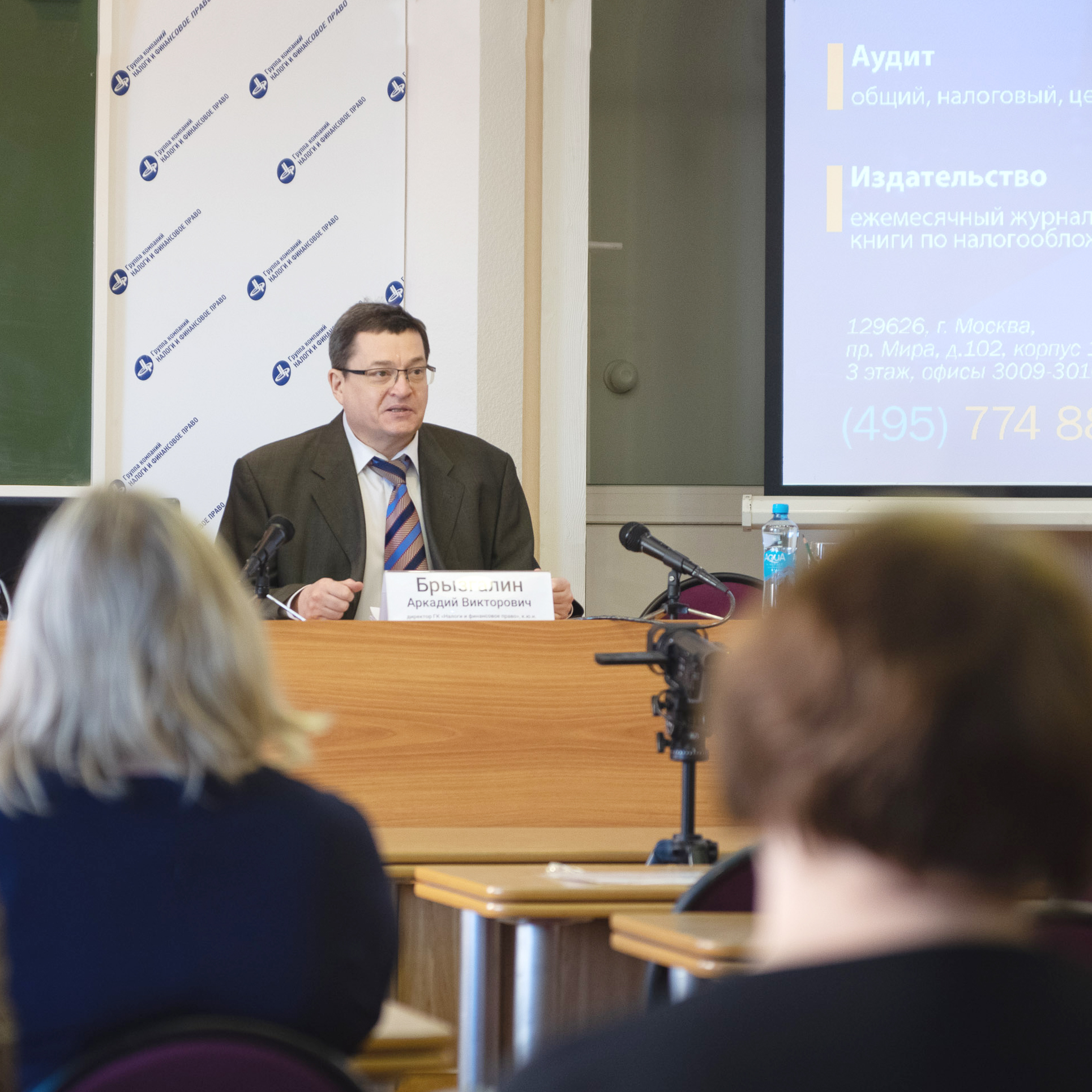 Встречу открыл руководитель ГК «Налоги и финансовое право» Аркадий Викторович Брызгалин с информационным сообщением о событиях российского налогообложения, а затем передал слово главному специалисту по юридическим вопросам Ольге Евгеньевне Аникеевой.