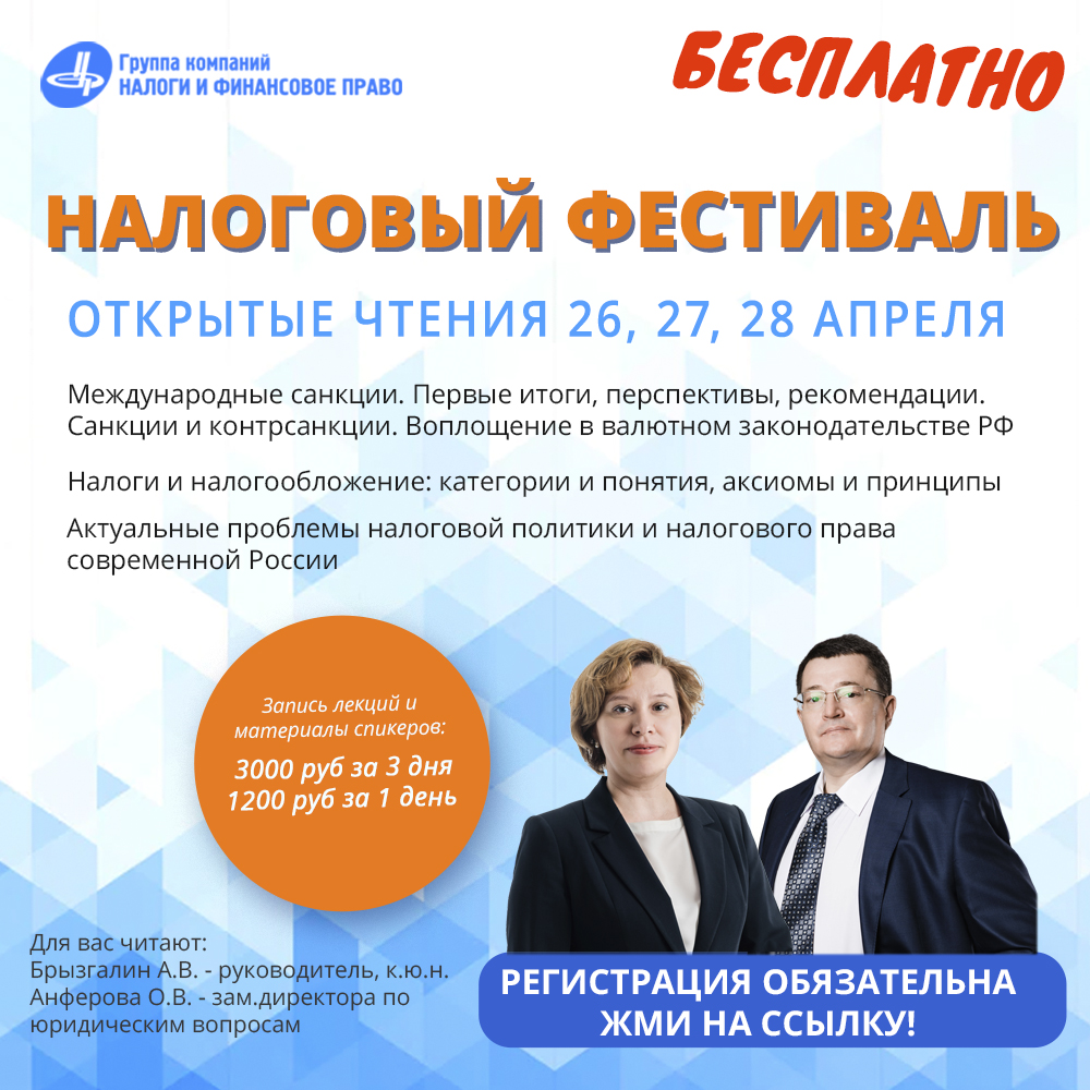 Друзья, регистрация на наш Налоговый Фестиваль в самом разгаре.На данный момент мы подбираем площадку, на которой пройдет лекция 28 апреля.