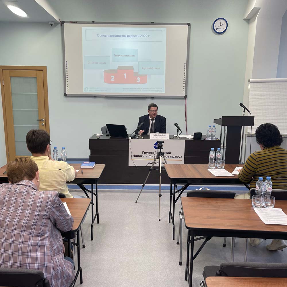 Клуб открыл руководитель ГК «Налоги и финансовое право» Аркадий Викторович Брызгалин с информационным сообщением о событиях российского налогообложения. Далее Аркадий Викторович выделил ряд обязательных пунктов, соблюдение которых поможет руководителю, бухгалтеру и финансисту выбрать оптимальный путь сохранения и развития бизнеса в текущих условиях, что и поспособствует укреплению позиций компании на рынке. Затем эксперт презентовал краткий вариант лекции о «технических» компаниях и текущем состоянии налогового контроля по этому вопросу. Более полный вариант лекции можно будет услышать в предстоящей летней серии авторских вебинаров Аркадия Викторовича. И конечно, обязательный пункт: простые и четкие рекомендации по теме выступления. Закончил свое выступление Аркадий Викторович кратким обзором арбитражной практики по налоговым и финансовым спорам за первое полугодие 2022 года.