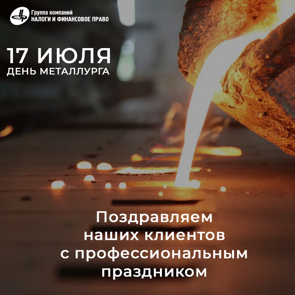 Мы гордимся сотрудничеством с людьми, связавшими свою жизнь со столь непростой профессией, и будем стремиться делать наше партнерство крепче стали. От лица коллектива ГК «Налоги и финансовое право» хотим пожелать всем металлургам крепкого здоровья, семейного благополучия, успехов в любых начинаниях и достижения самых высоких целей!