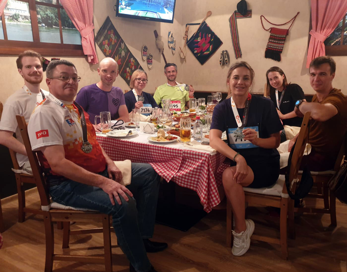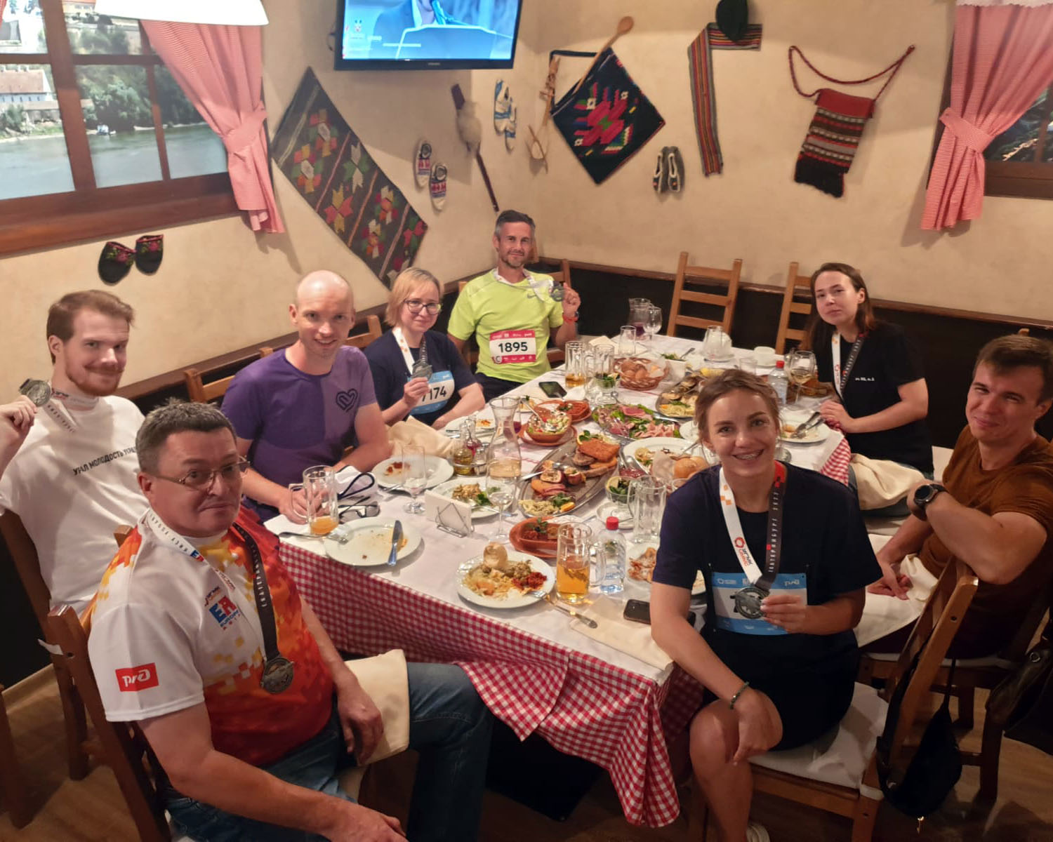 Это становится доброй традицией: после каждого забега участники встречаются за большим столом и в теплой дружеской обстановке делятся своими эмоциями от дистанции, рассказывают интересные моменты, обсуждают планы и участие в следующих мероприятиях.На это раз Аркадий Викторович собрал всех в «Сербской таверне». За столом встретились участники разных дистанций, а также давний друг команды, гуру бега - Александр Казанцев.