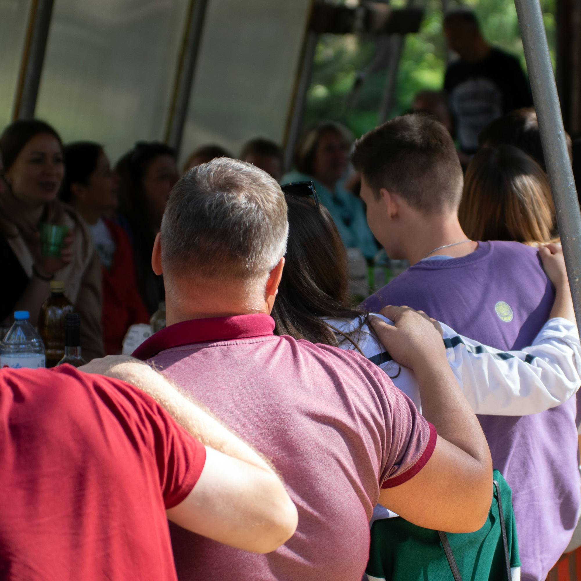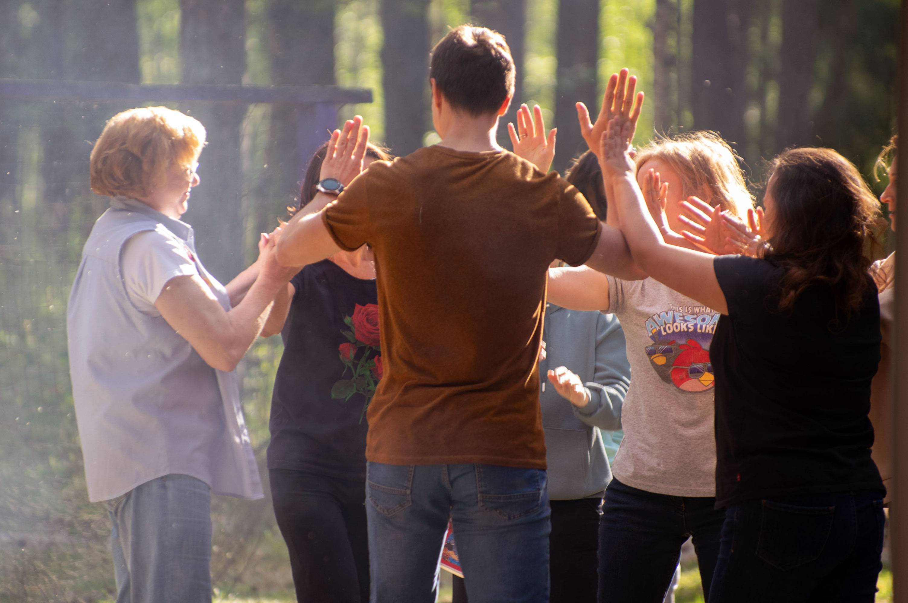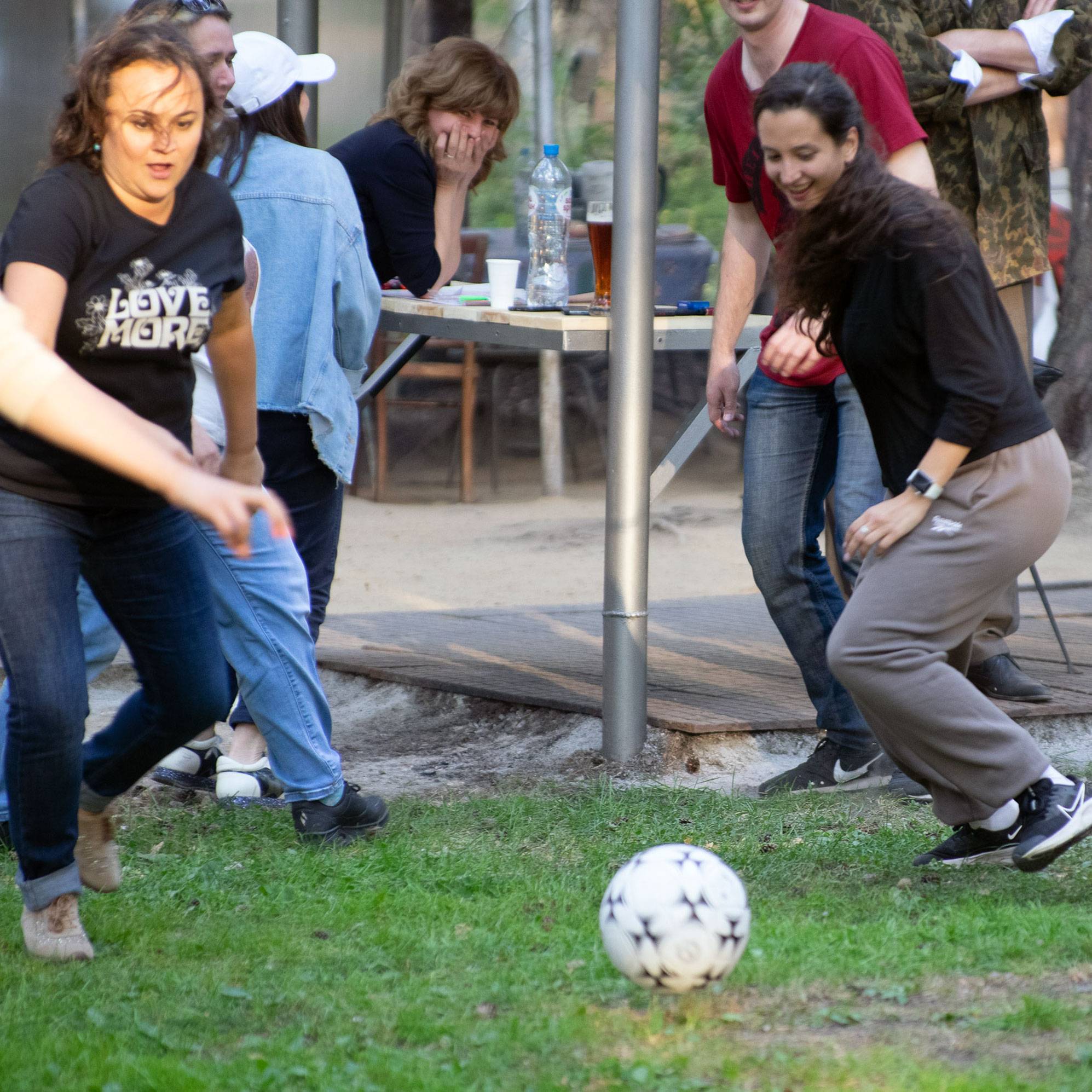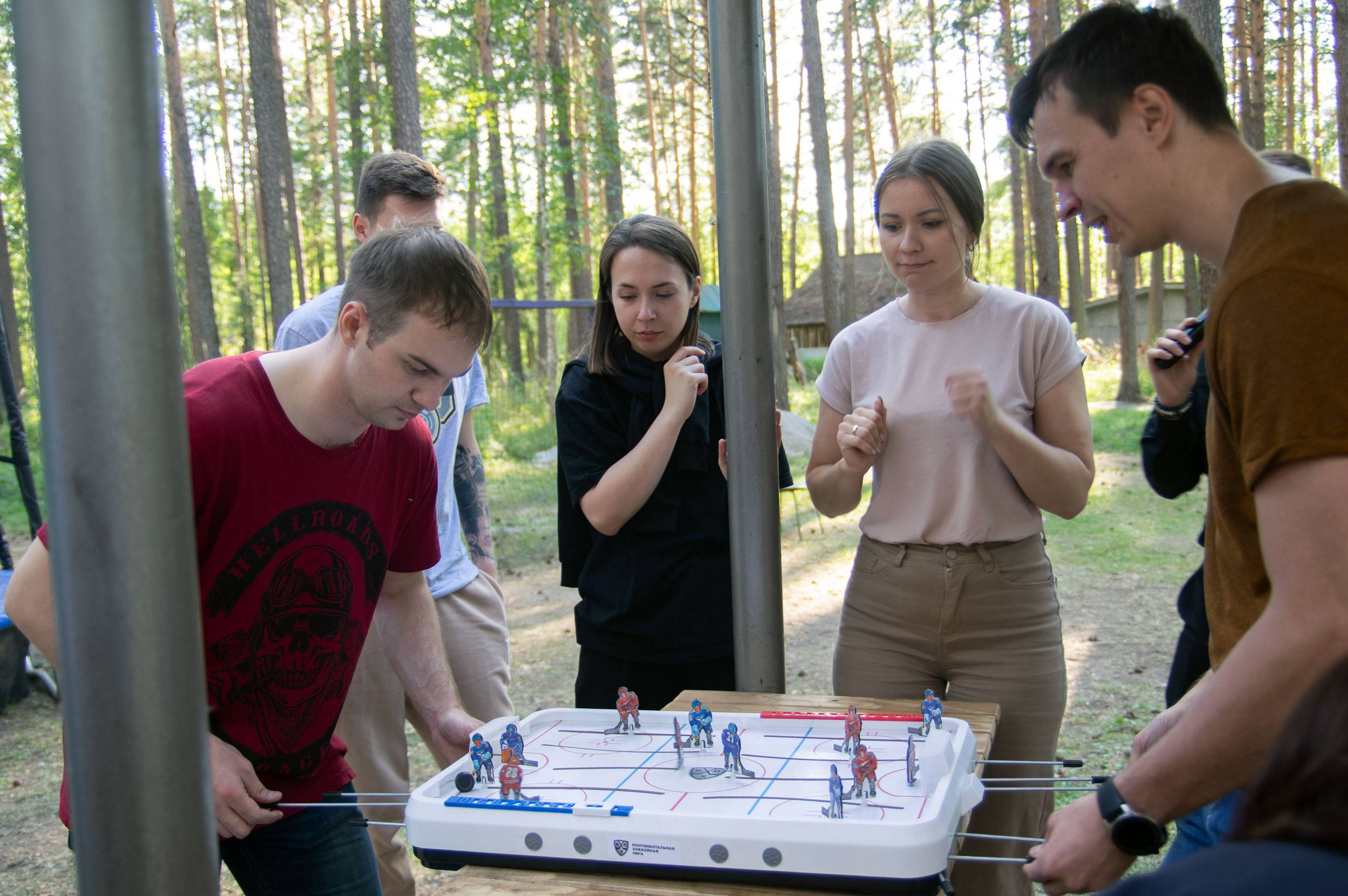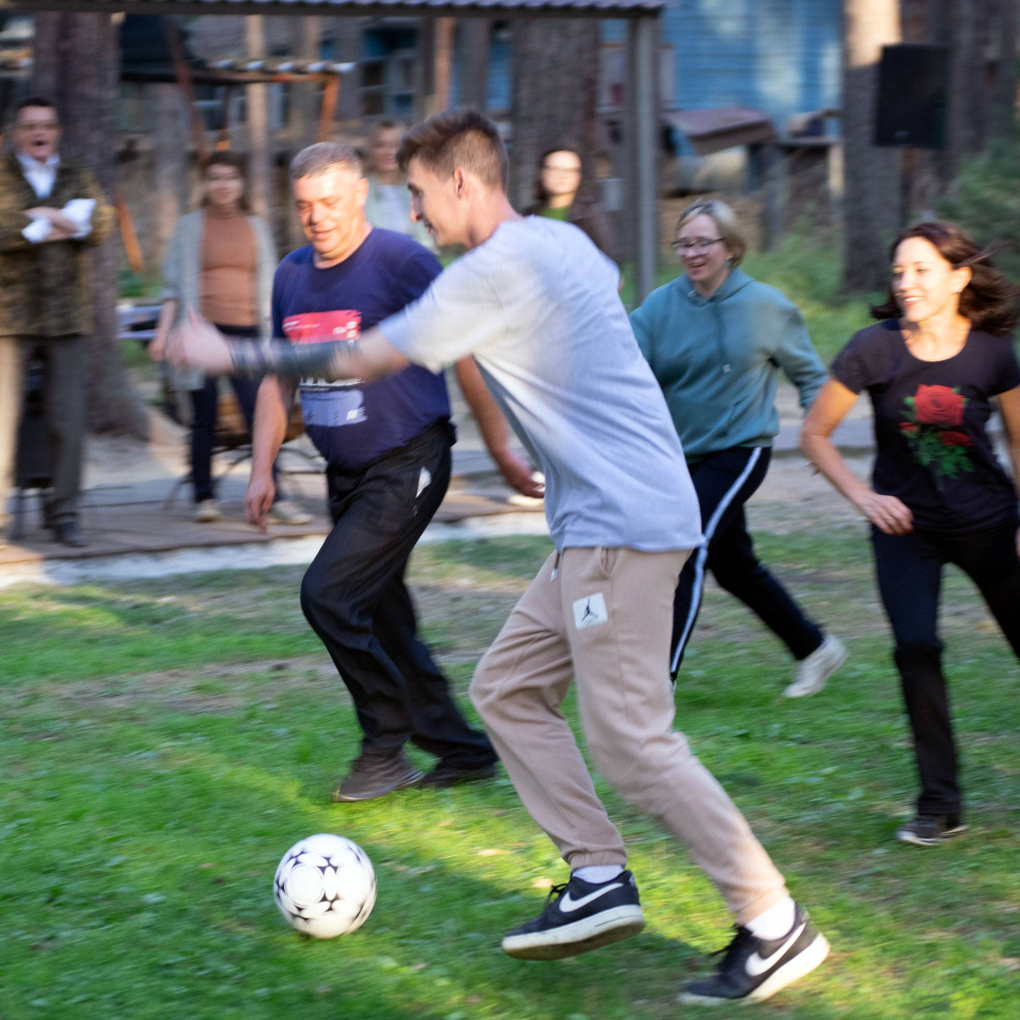 Пикник начался традиционным вступительным словом Аркадия Викторовича, а дальше викторины, конкурсы и игры на любой вкус: пазлы и дженга, настольный хоккей, волейбол и, конечно, футбол.