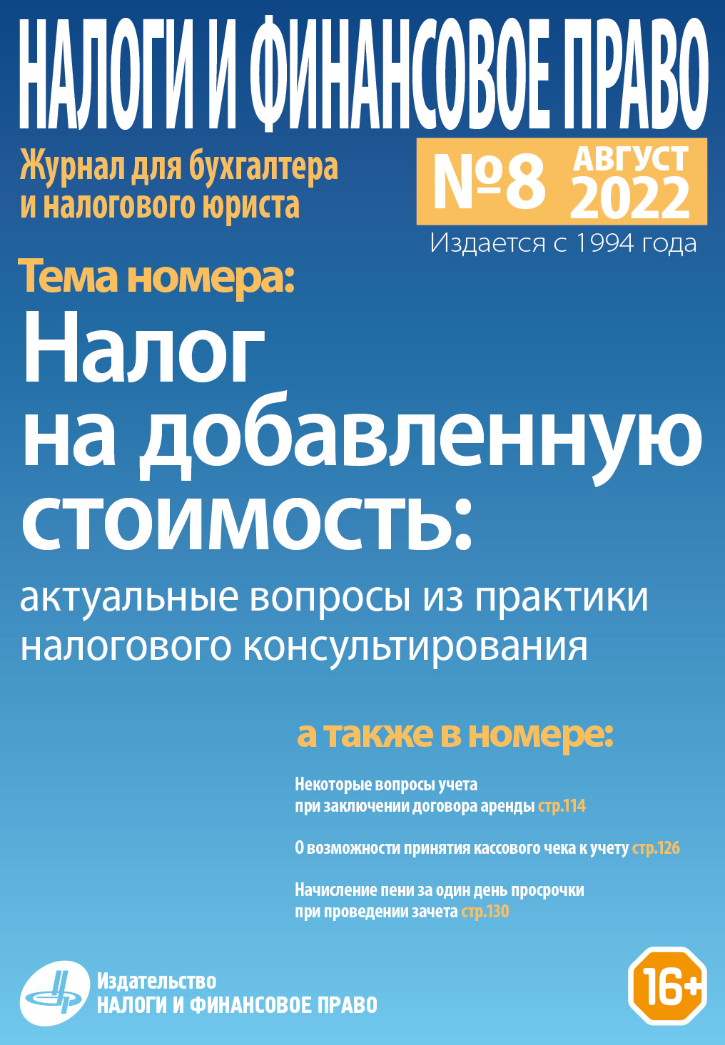 Новый номер журнала №08/2022. «Налог на добавленную стоимость: актуальные вопросы из практики налогового консультирования»