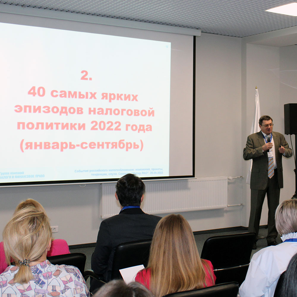 Сообщение руководителя ГК «Налоги и финансовое право» Аркадия Викторовича Брызгалина было посвящено обзору налоговой политики 2022 года. В своем докладе эксперт выделил основные события российского налогообложения, сделал ретроспективу интересных дел по налоговым спорам и дал краткий прогноз развития налоговой политики в ближайшем будущем.