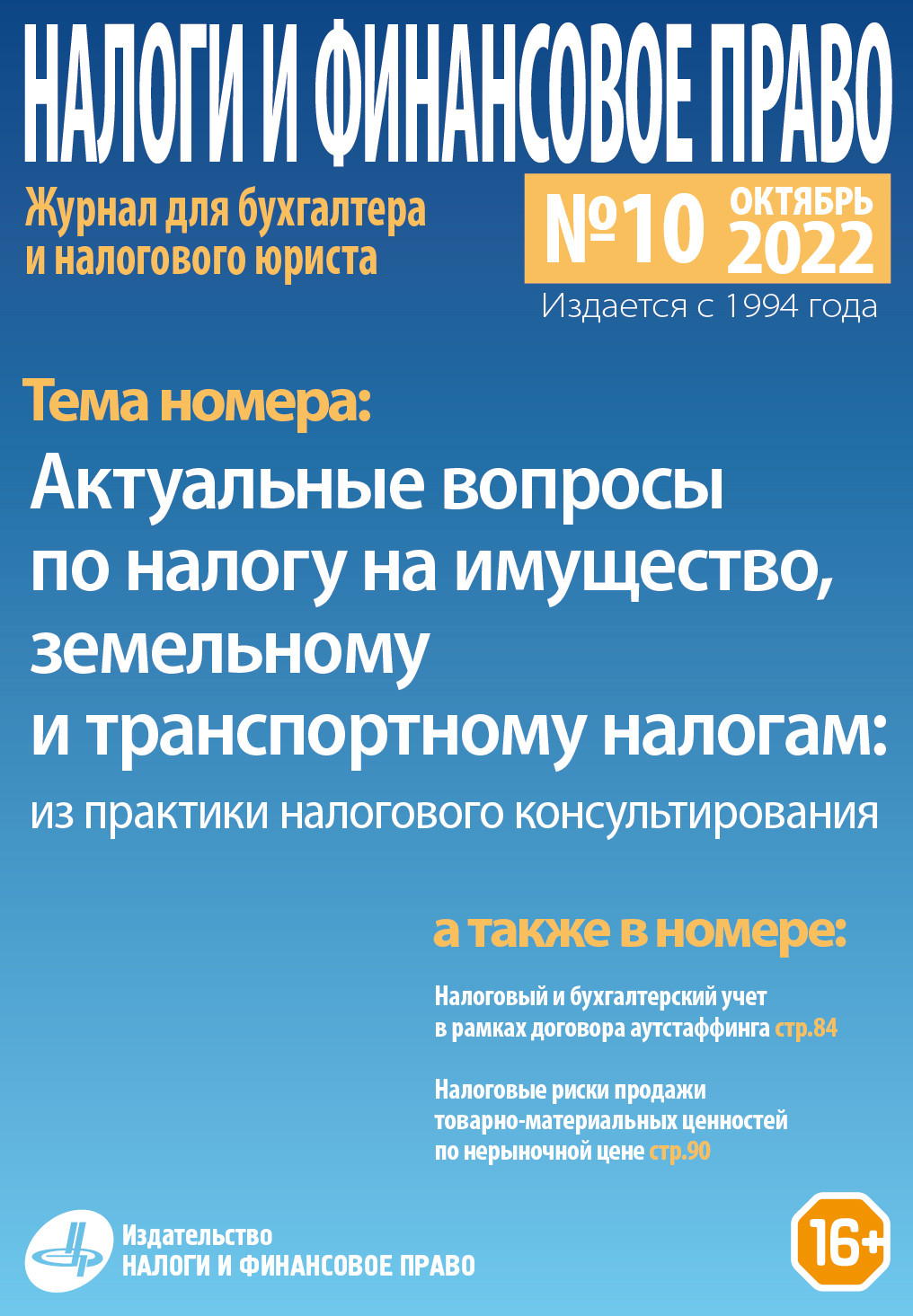 Новый номер журнала №10/2022. «Актуальные вопросы по налогу на имущество, земельному и транспортному налогам: из практики налогового консультирования»