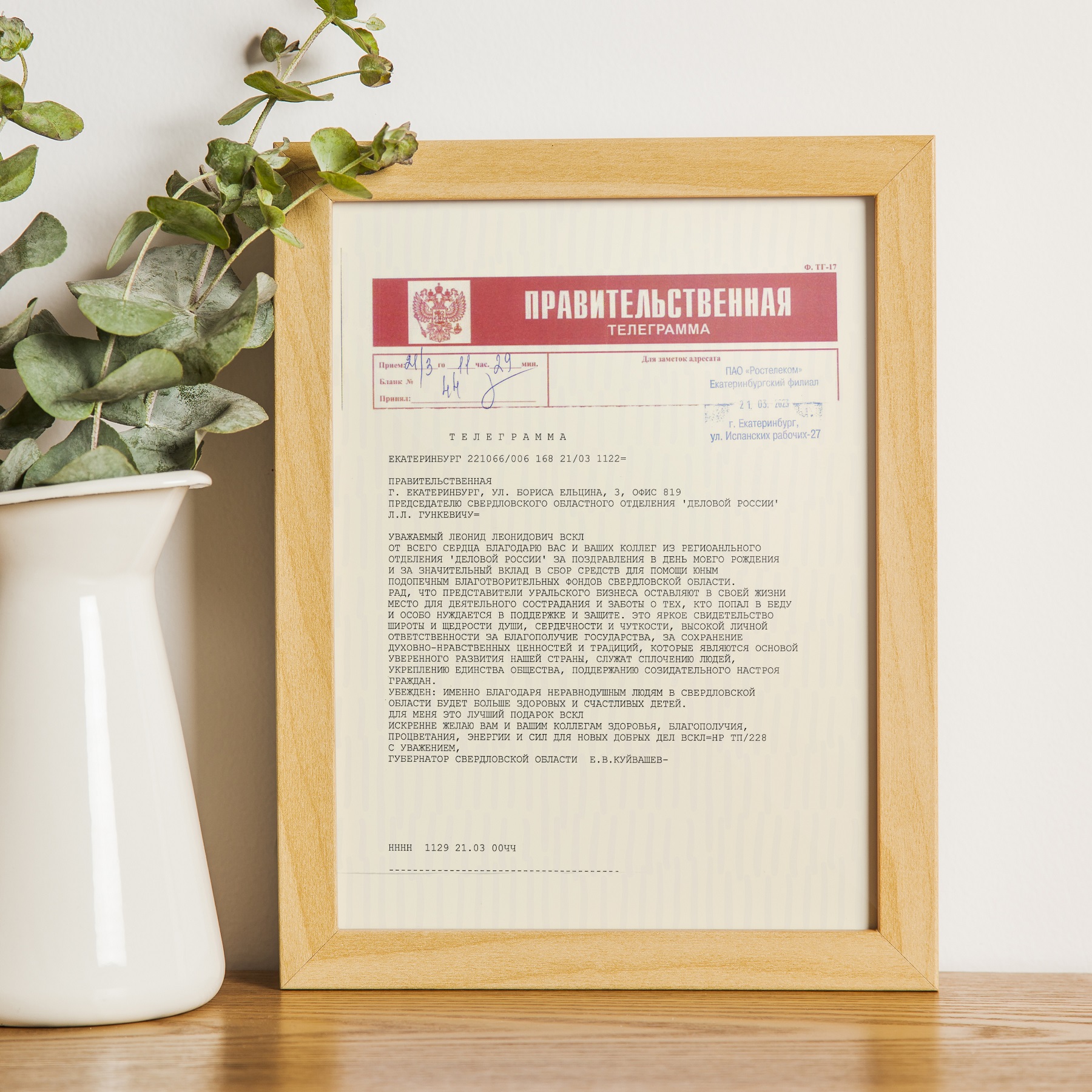 В конце марта в адрес регионального отделения Общероссийской общественной организации «Деловая Россия», членом которой является руководитель ГК «Налоги и финансовое право» Брызгалин Аркадий Викторович, была направлена правительственная телеграмма от губернатора Свердловской области Е.В. Куйвашева.В телеграмме выражается благодарность за значительный вклад отделения в сборе средств на нужды юных подопечных благотворительных фондов Свердловской области.
