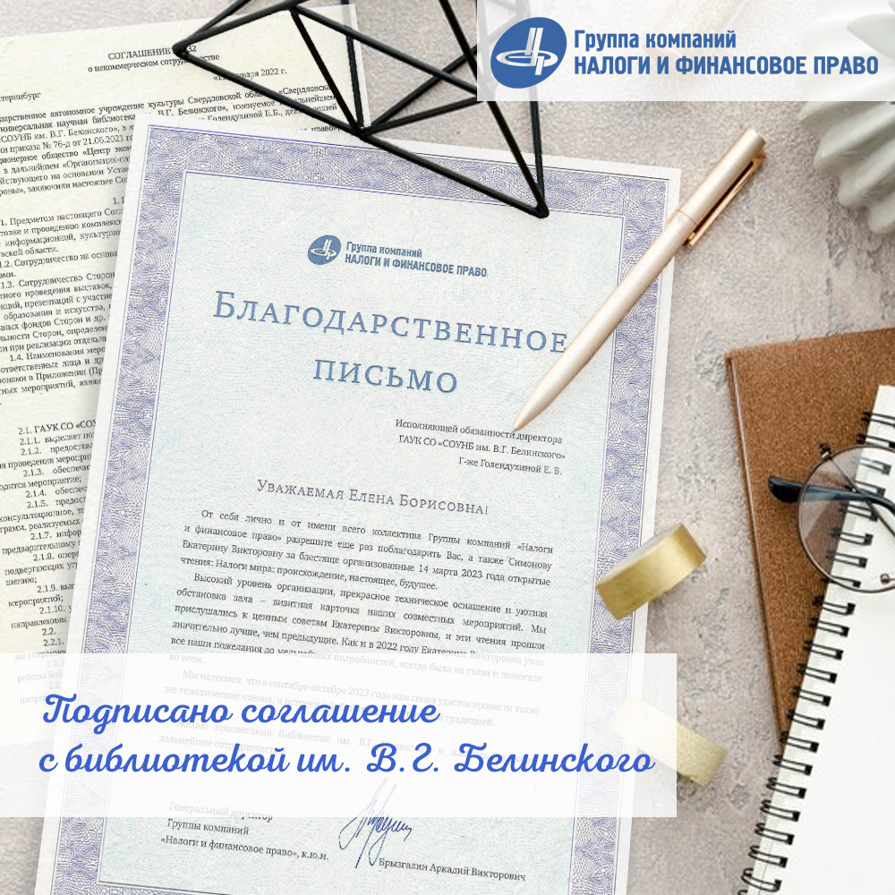Мы преодолели еще одну ступеньку к укреплению нашего партнерства: между ГК «Налоги и финансовое право» и библиотекой им. В.Г. Белинского подписано соглашения о некоммерческом сотрудничестве.Длительное и плодотворное сотрудничество между библиотекой и нашей компанией началось еще в 90-тых годах, велось по разным направлениям и всегда строилось на высоком профессиональном уровне.