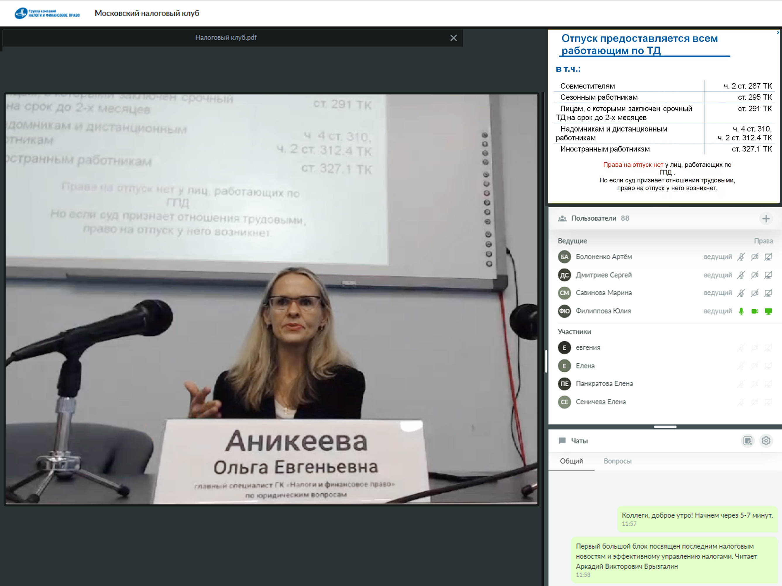 Затем эксперт передал слово главному специалисту по юридическим вопросам Аникеевой Ольге Евгеньевне, которая стала хозяйкой второго большого блока.