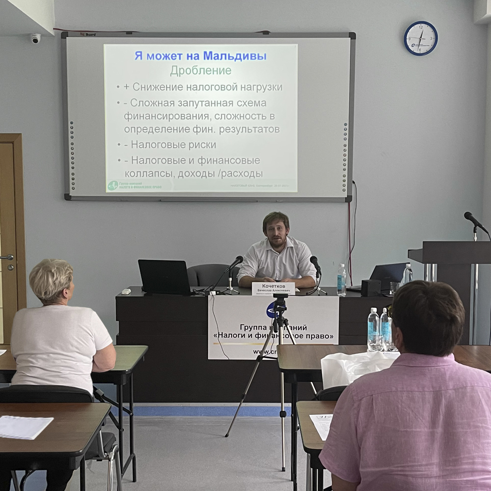 Заседание открылось большим блоком, автором которого стал генеральный директор ГК «Налоги и финансовое право» Аркадий Викторович Брызгалин. В первой части выступления Аркадий Викторович подвел налоговые итоги I полугодия 2023 года, отметил основные новости. Затем эксперт привел примеры судебной практики, касающиеся смягчающих обстоятельств, и дал рекомендации, как правильно снизить размер ответственности за налоговые правонарушения. В заключении Аркадий Викторович рассмотрели примеры «ненормативной терминологии» в налоговом правоприменении и передал слово директору по аудиту Кочеткову Вячеславу Алексеевичу.