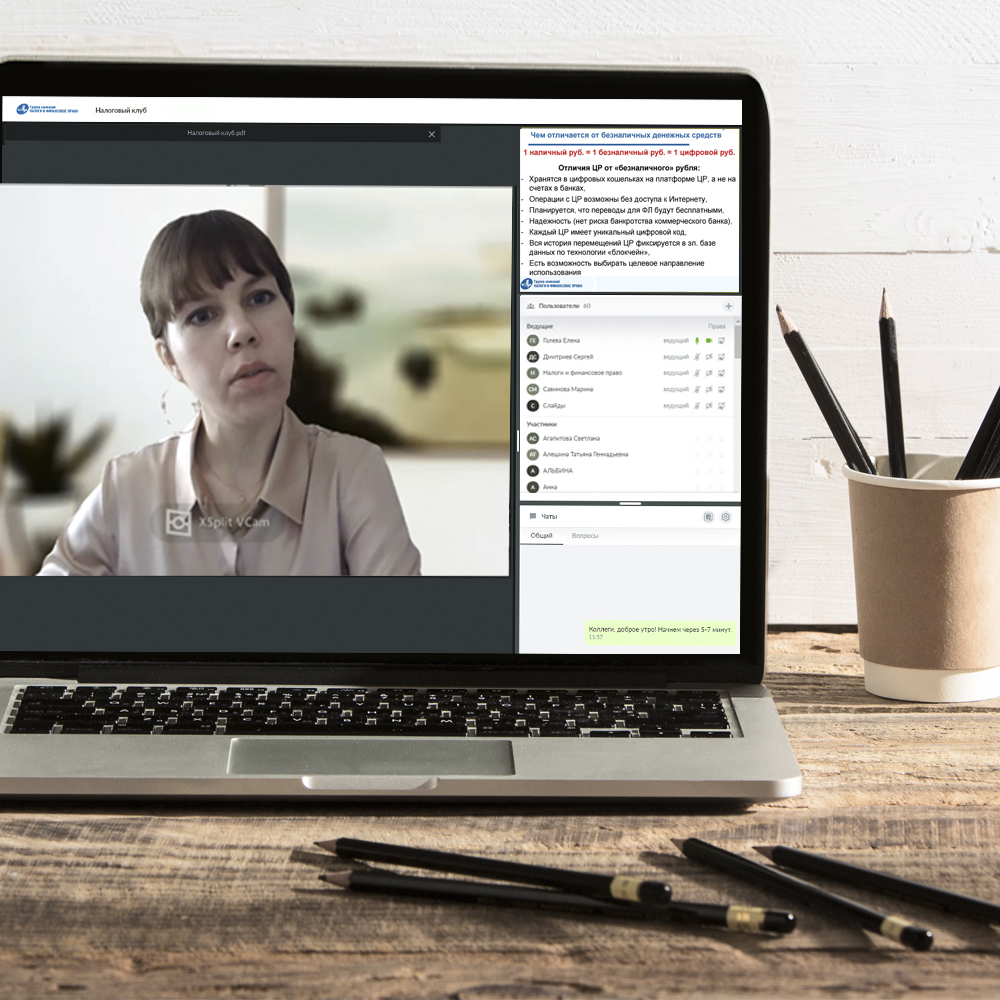Елена Валерьевна рассказала о цифровом рубле, его применении, отличиях от криптовалюты и рассмотрела основные понятия нового законодательства, касающиеся цифрового рубля.