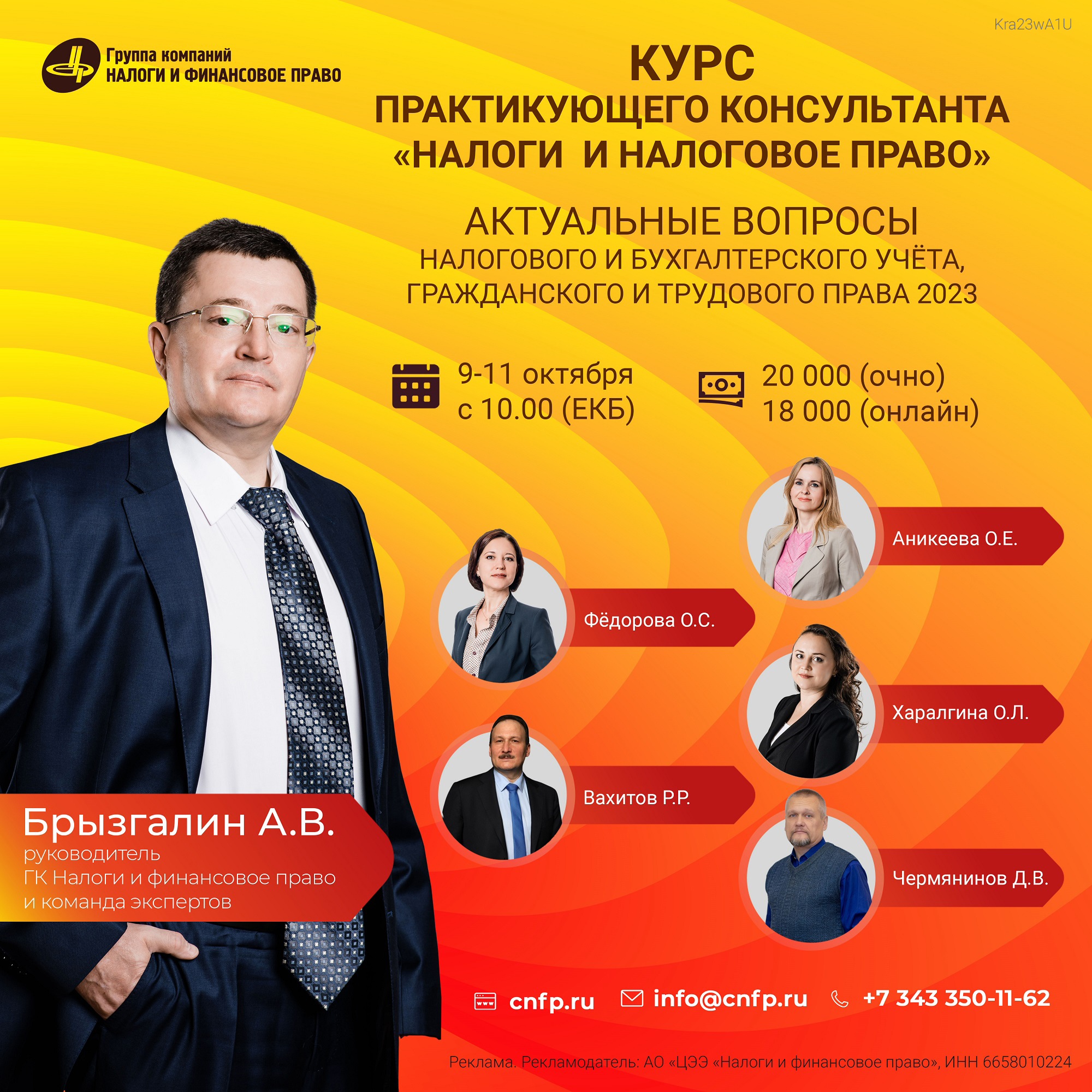9 октября стартует осенний Курс практикующего консультанта: «Налоги и налоговое право»: Актуальные вопросы налогового и бухгалтерского учёта, гражданского и хозяйственного права.