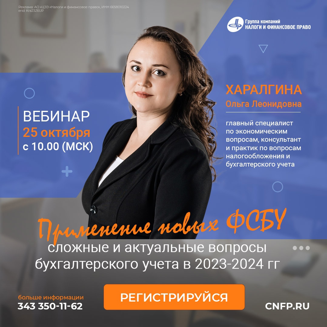 Открыта регистрация на вебинар Ольги Харалгиной: Применение новых ФСБУ, сложные и актуальные вопросы бухгалтерского учета в 2023-2024 гг.