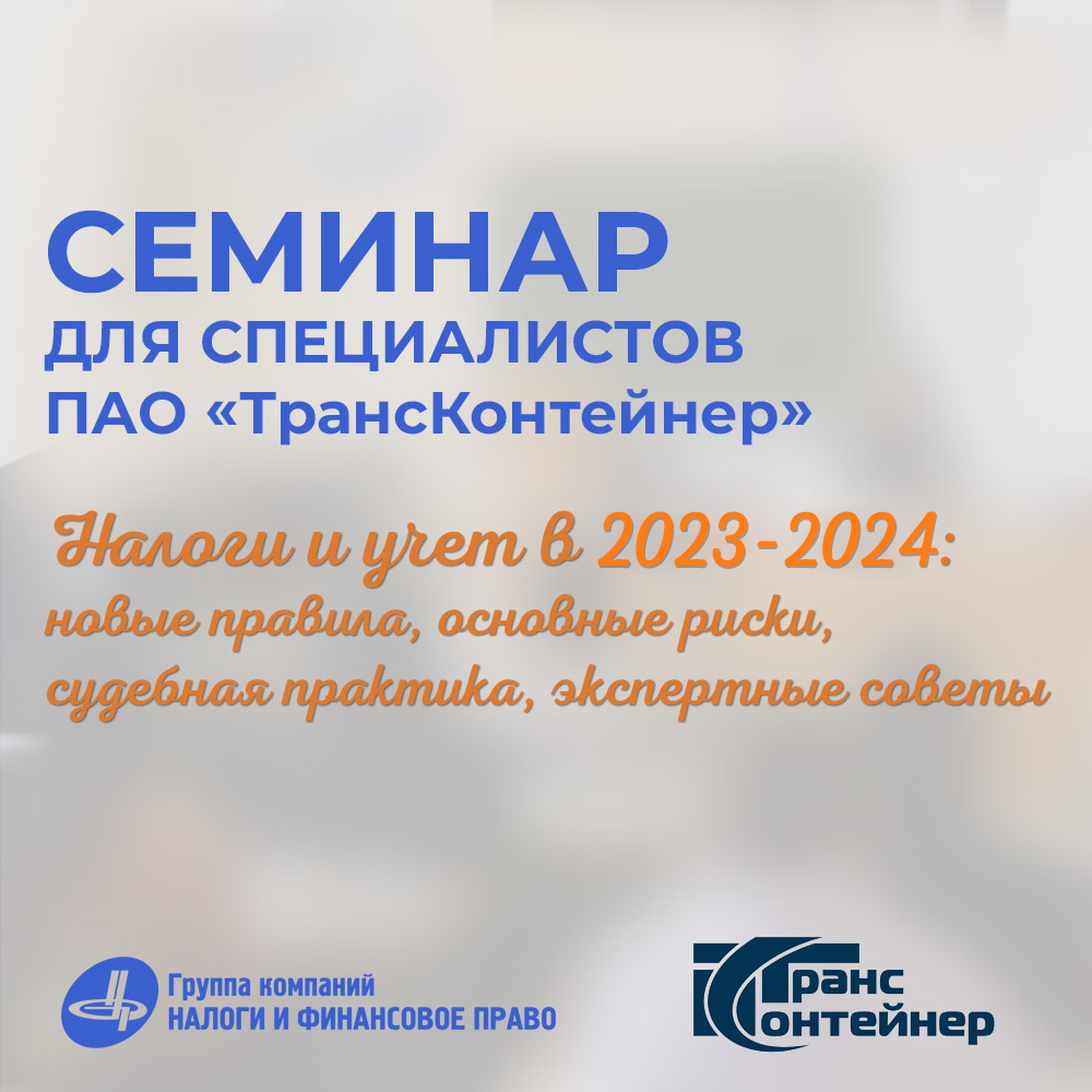 В середине декабря в конференц-зале ГК «Налоги и финансовое право» для специалистов ПАО «ТрансКонтейнер» был организован семинар «Налоги и учет в 2023 - 2024 гг.: новые правила, основные риски, судебная практика, экспертные советы».⠀