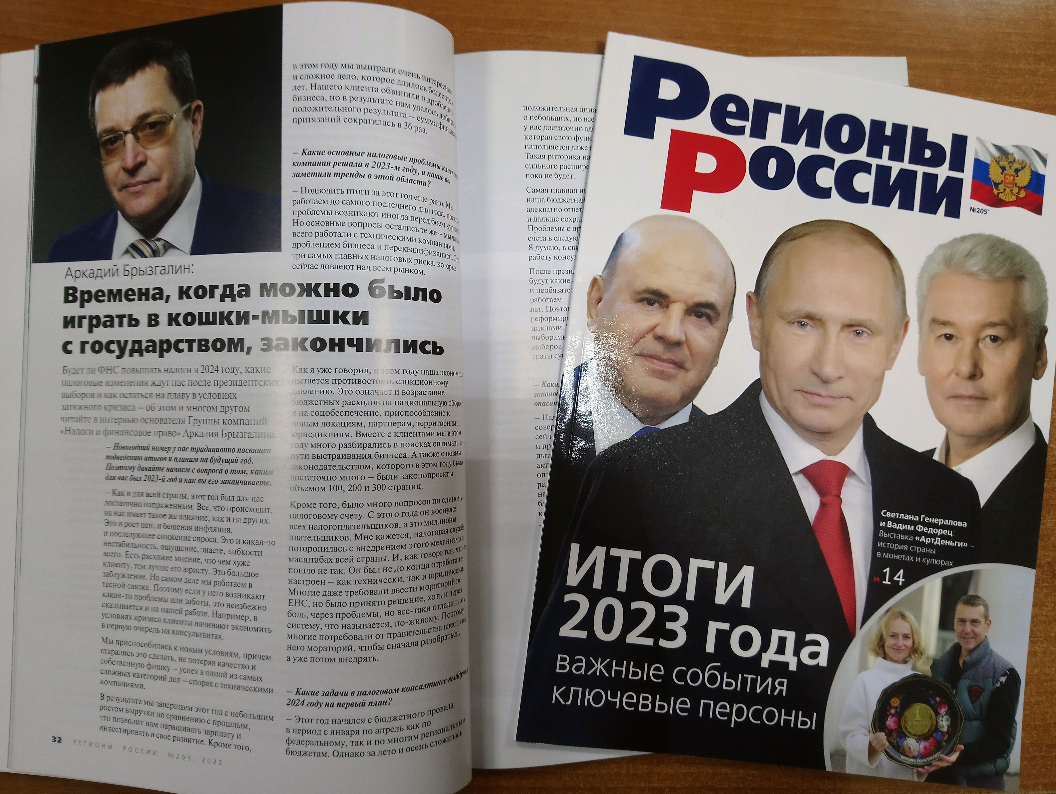 В свежем номере журнала «Регионы России» вышло интервью руководителем Группы компаний «Налоги и финансовое право» Аркадием Викторовичем Брызгалиным.
