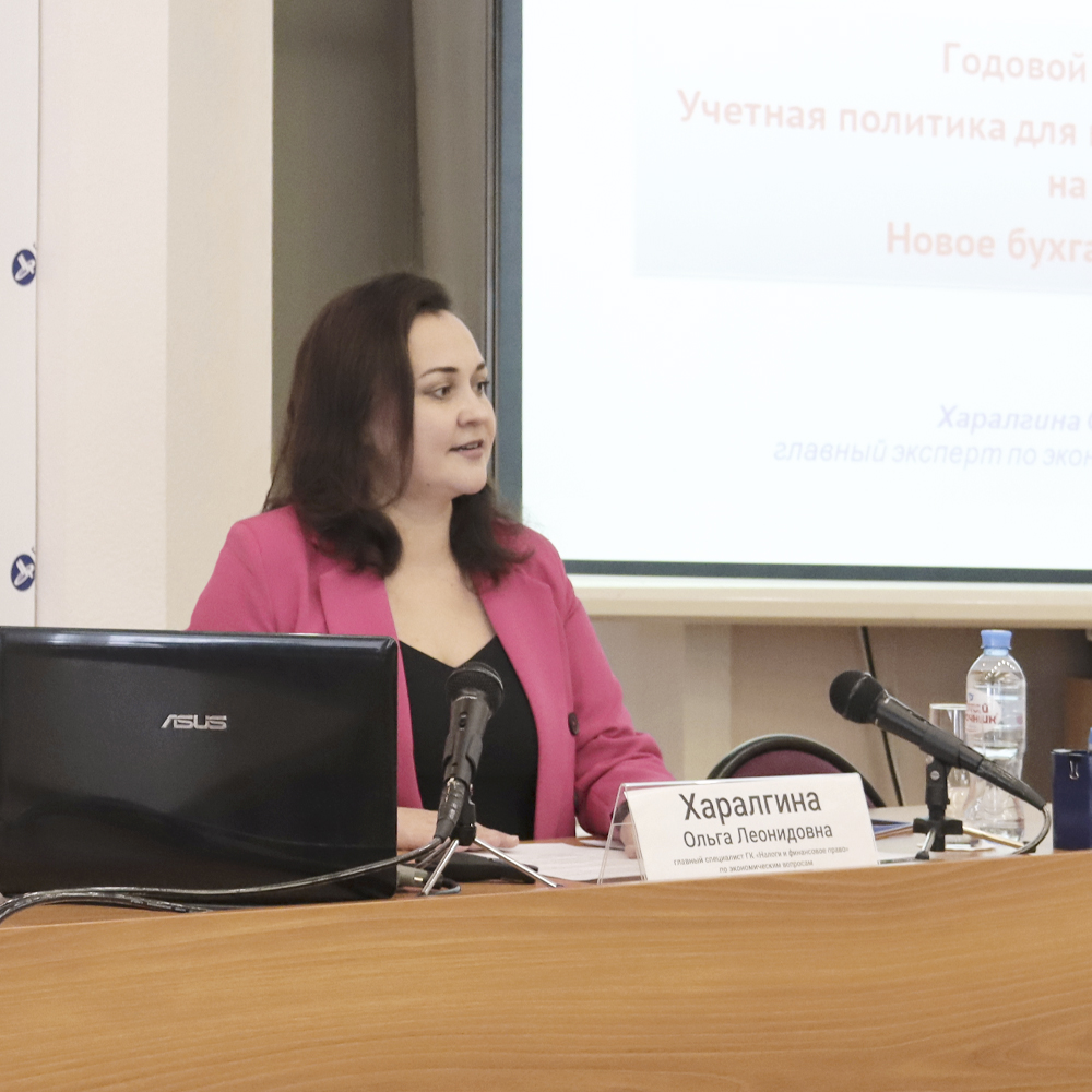 Следующий блок был посвящен подготовке годового отчета. Эксперт по методологии бухгалтерского учета Ольга Леонидовна Харалгина рассказала о тонкостях представления информации и составления годовой бухгалтерской отчетности, о нововведениях в бухгалтерском учете с 2024 года.