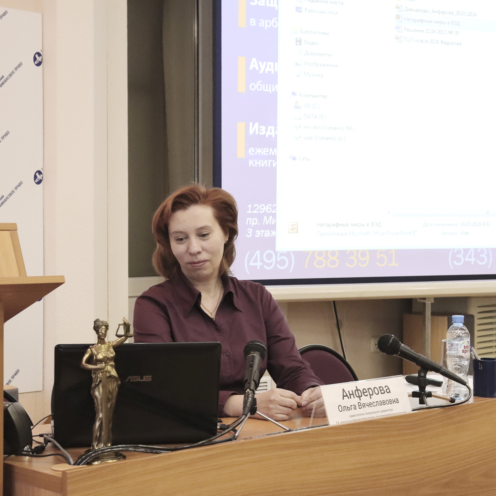 Далее заместитель директора по юридическим проектам Анфёрова Ольга Вячеславовна сообщила каков порядок и при каких условиях производится выплата дивидендов в 2024 году, какие существуют ограничения в этом случае и как производится налогообложение выплат.