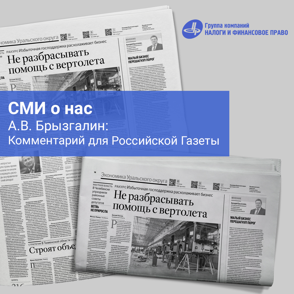 На днях в «Российской Газете» была опубликована статья, в которой генеральный директор ГК «Налоги и финансовое право» Аркадий Викторович Брызгалин рассказал об усилении налогового контроля в отношении малого бизнеса и предложил оптимизировать отношения малого бизнеса с налоговой инспекцией.