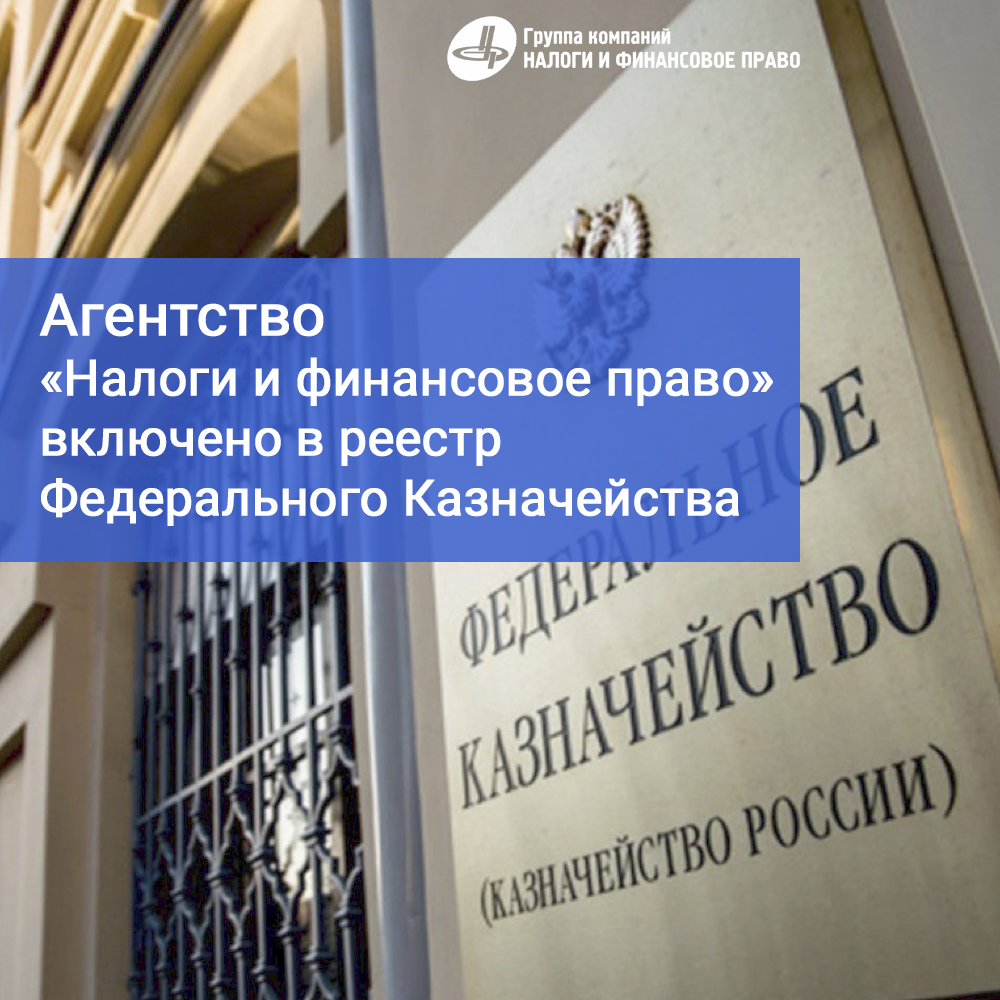 Агентство «Налоги и финансовое право» включено в реестр Федерального Казначейства России!