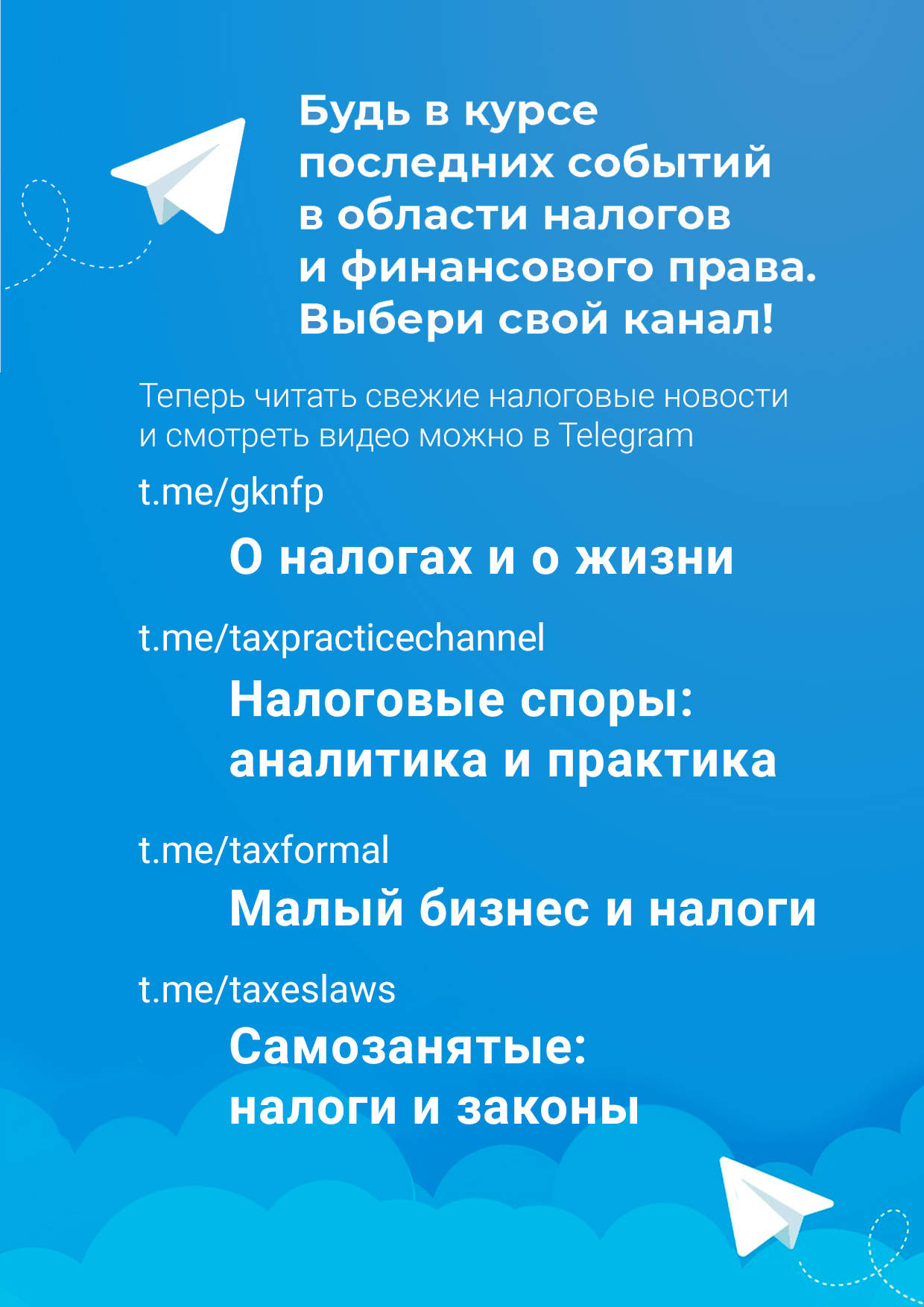 В начале рабочей недели хотим напомнить о своих телеграм-каналах. Более 30 лет мы тщательно отбираем только важное в океане налогов и публикуем эту информацию у себя в телеграм-каналах, снабжая комментариями наших экспертов.