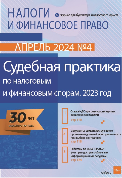 Новый номер журнала №04/2024. «Судебная практика по налоговым и финансовым спорам. 2023 год»
