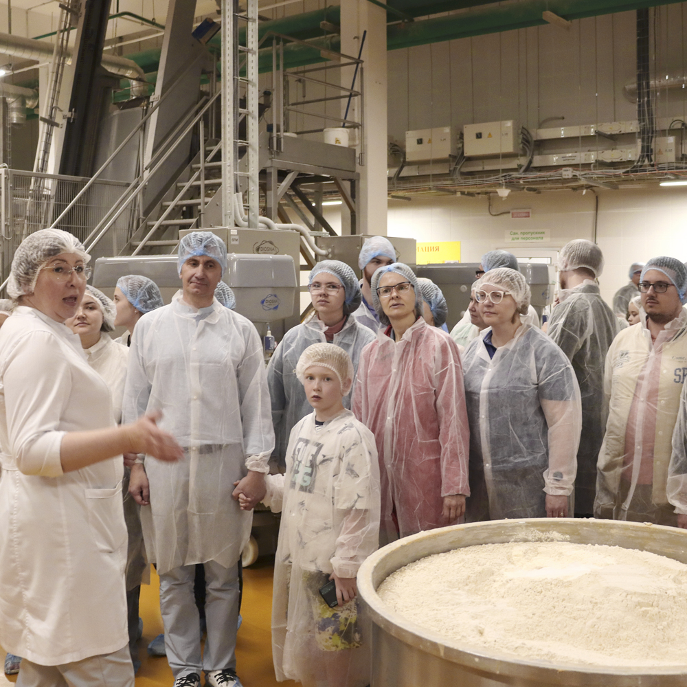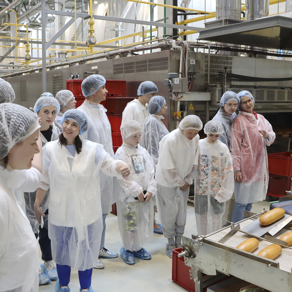 Все, и взрослым, и в особенности дети, с интересом наблюдали, как начиная свой путь по уникальной автоматизированной линии небольшой кусочек теста превращается во вкуснейший батон. Проходя все пять зон и выпекаясь при разных температурных режимах, он получается более вкусным и дольше не черствеет. А еще мы узнали сколько метров в одном «Штрангброте» и сколько пакетов с хлебом из него фасуется, а также какой хлеб по вкусу получается из печи с каменным подом и многое другое.
