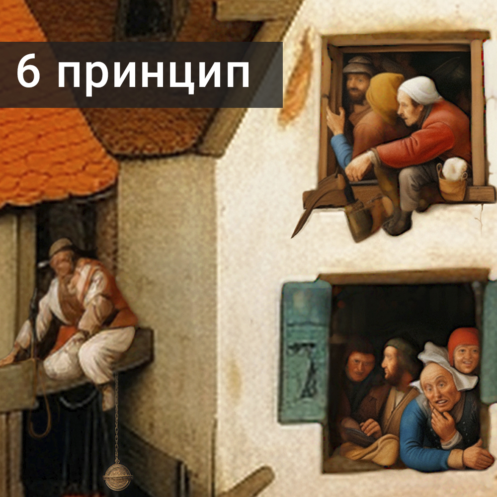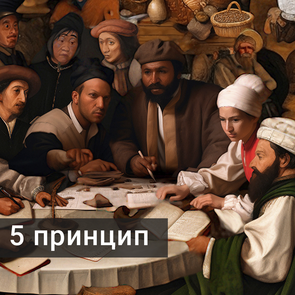 5-тый принцип «Невозможность дискриминации»: За общим столом собрались горожане разной расовой, религиозной, национальной и социальной принадлежности. Здесь получил отражение принцип о «невозможности дискриминации» в институте налогообложения.