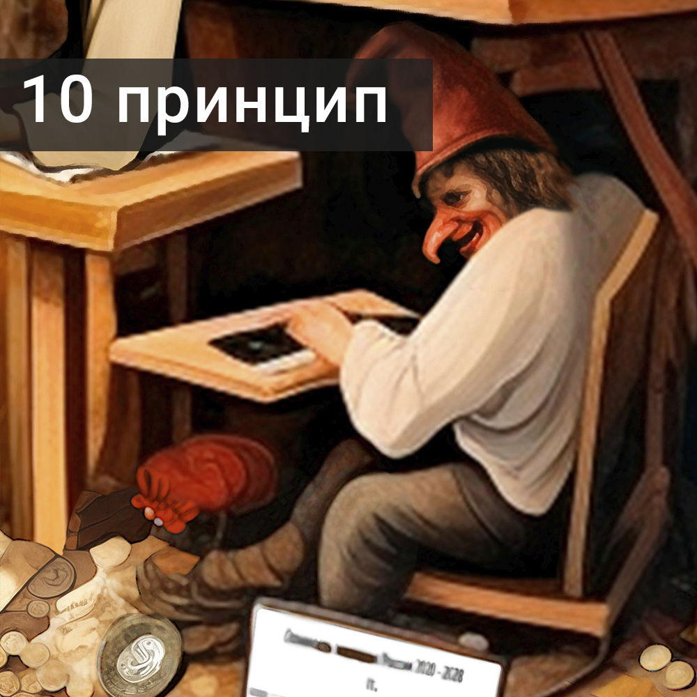 10-тый принцип «Признаки налога»: Шут-злодей нашёл лазейку и прописывает свои псевдозаконы ради собственной наживы. Принцип говорит о том, что если платеж обладает признаками налога, но не прописан в кодексе, либо нарушен порядок его установления, то взимание его незаконно.