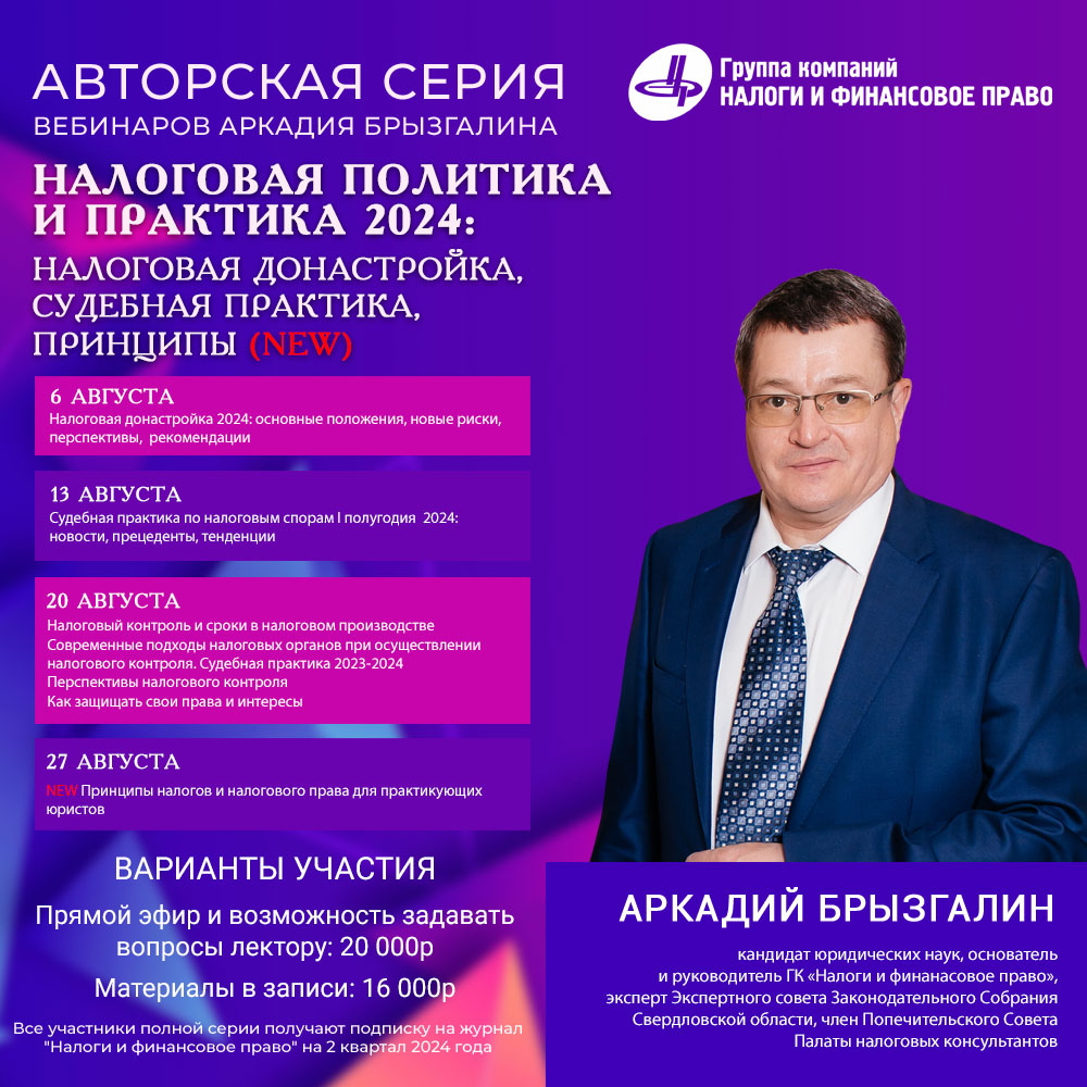 Чуть больше двух недель остается до начала серии вебинаров: Налоговая политика и практика 2024: налоговая донастройка, судебная практика, принципы.